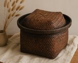 - Antique SE Asian Handwoven Storage Basket Domed Lid Square Base Bamboo or Rattan
