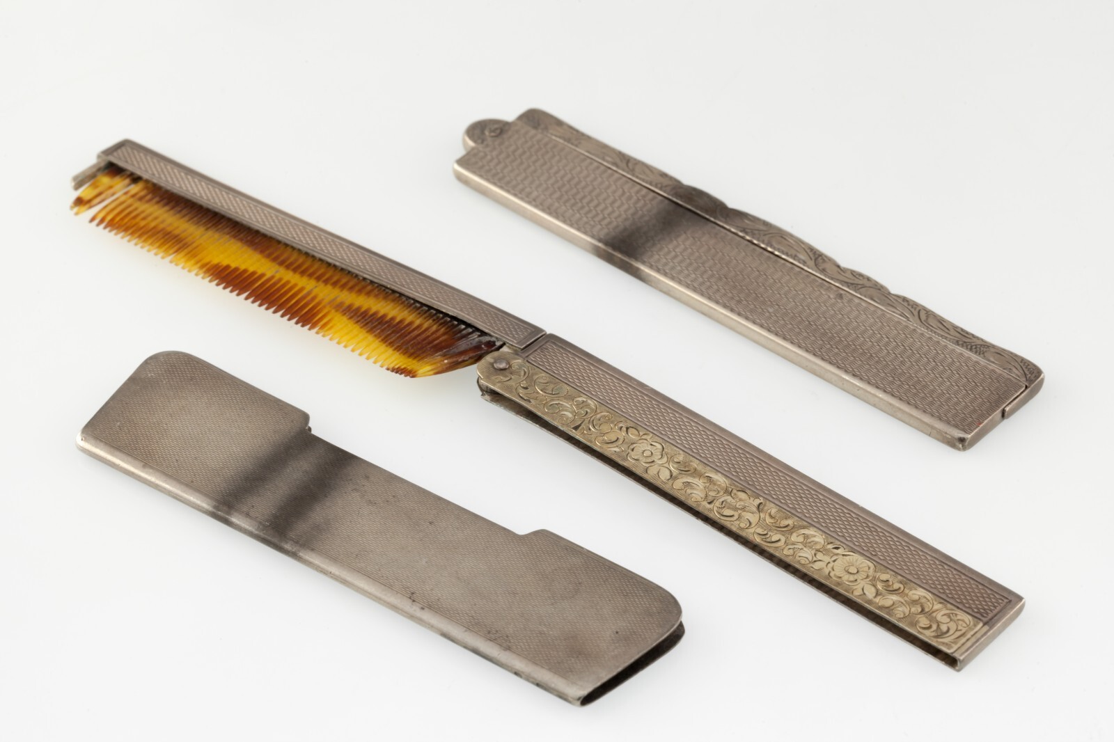 Ensemble de coiffeur en argent antique avec peigne et couverture de rasoir