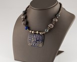- Antique Silver Beaded Necklace with Lapis Accents and Enamel Pendant