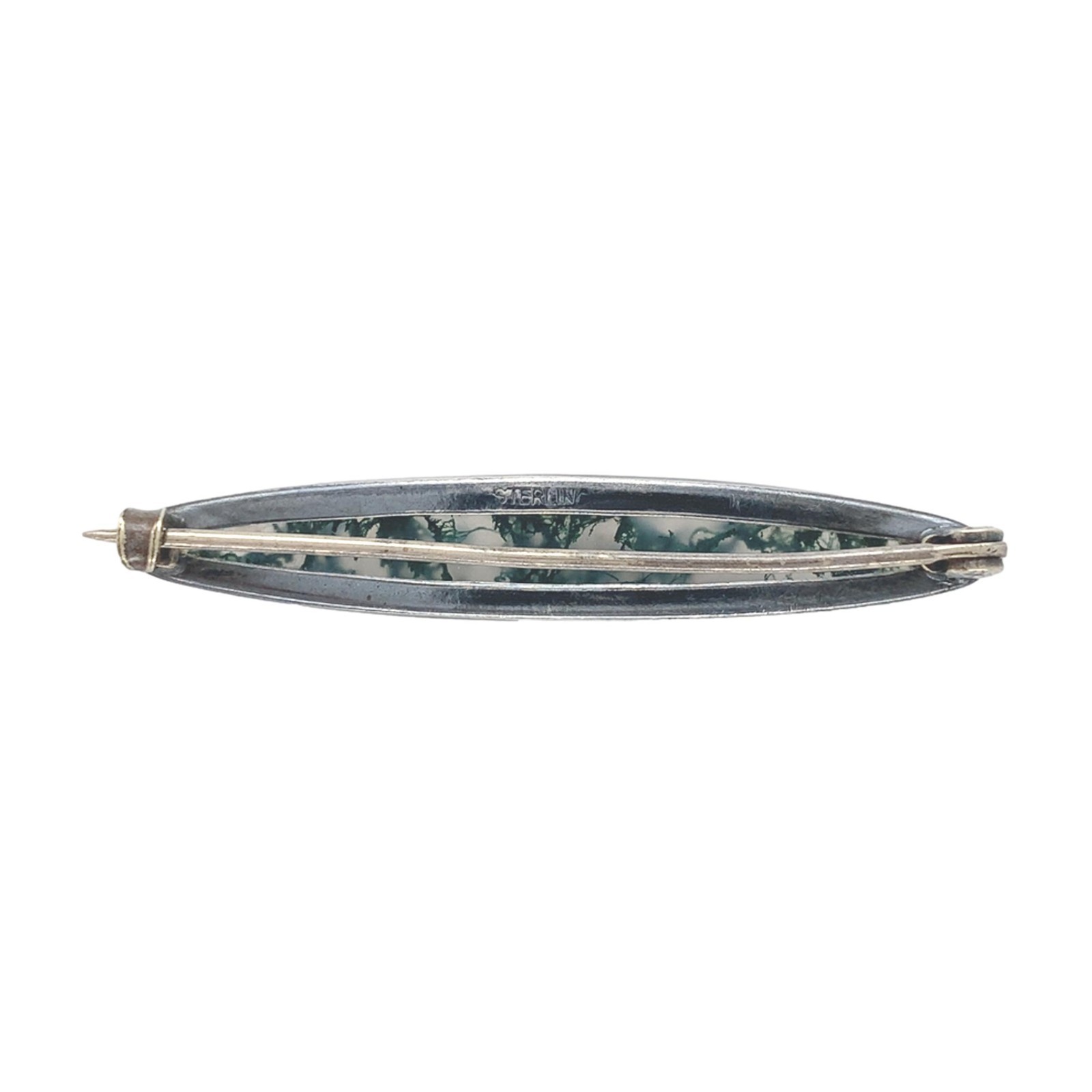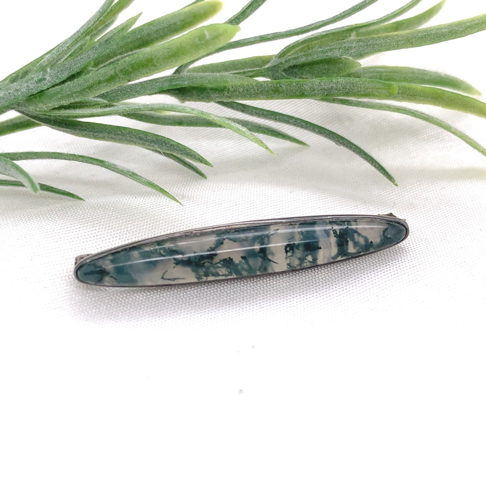 - Antique Sterling Silver Genuine Natural Moss Agate Bar Pin 1 3/4" (#J7438)