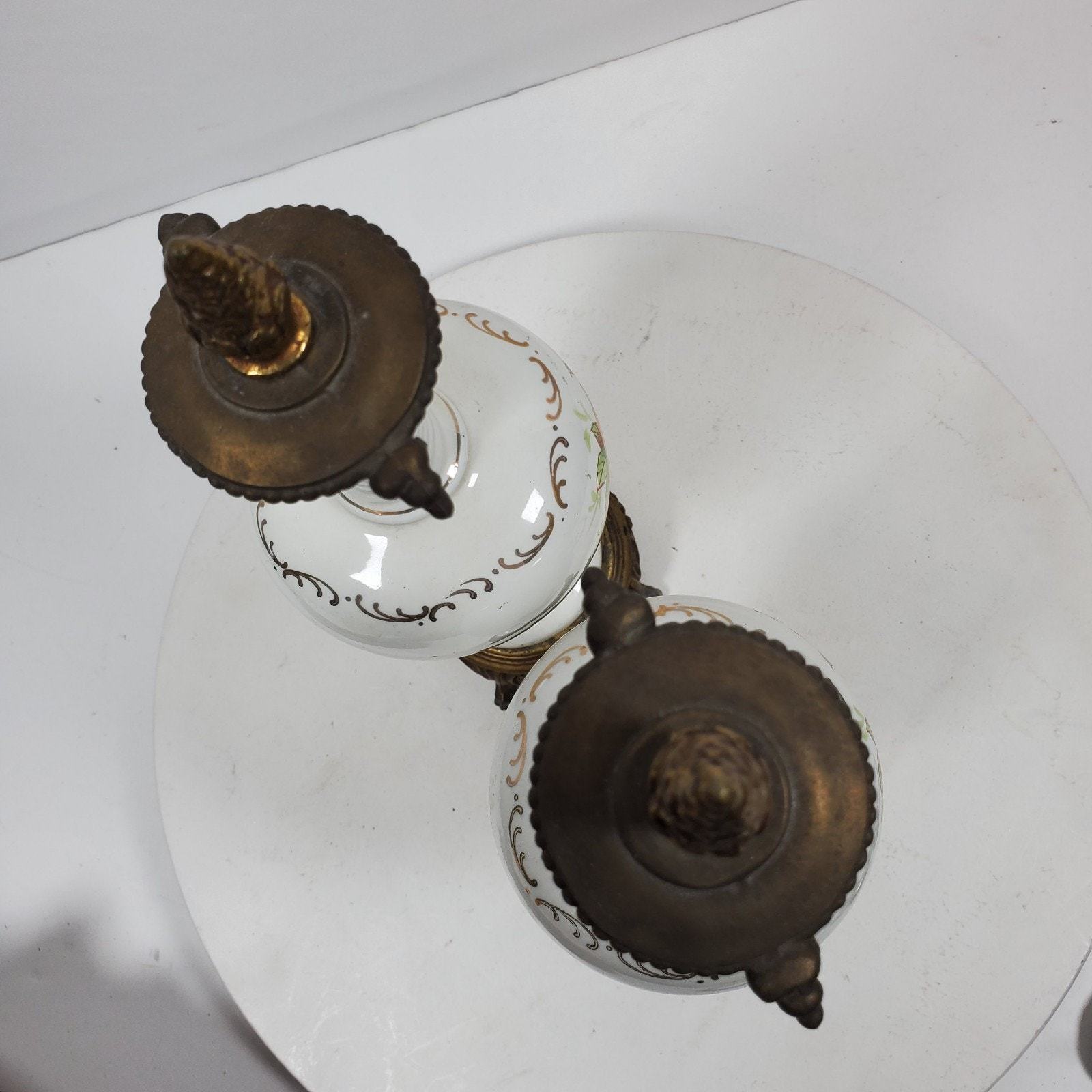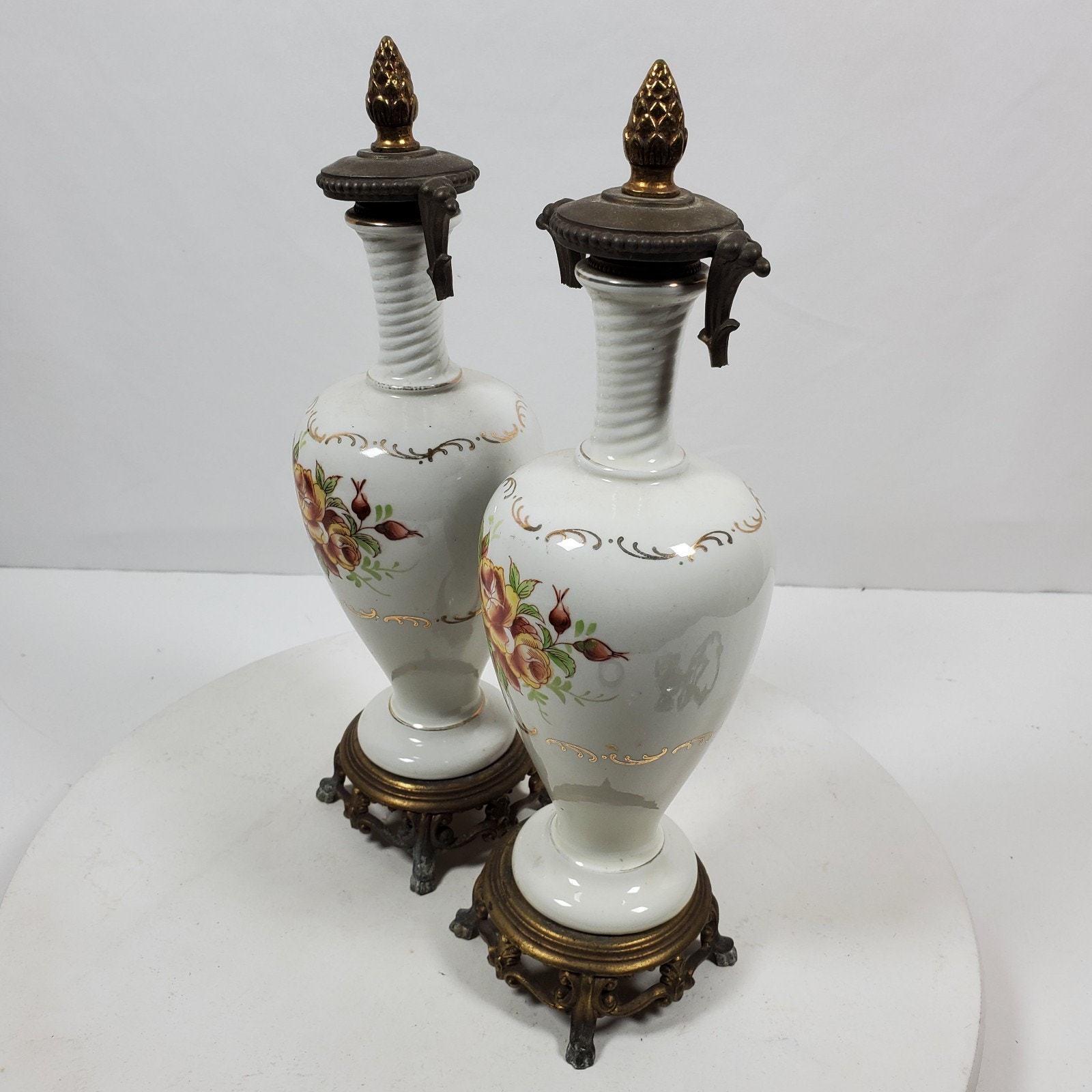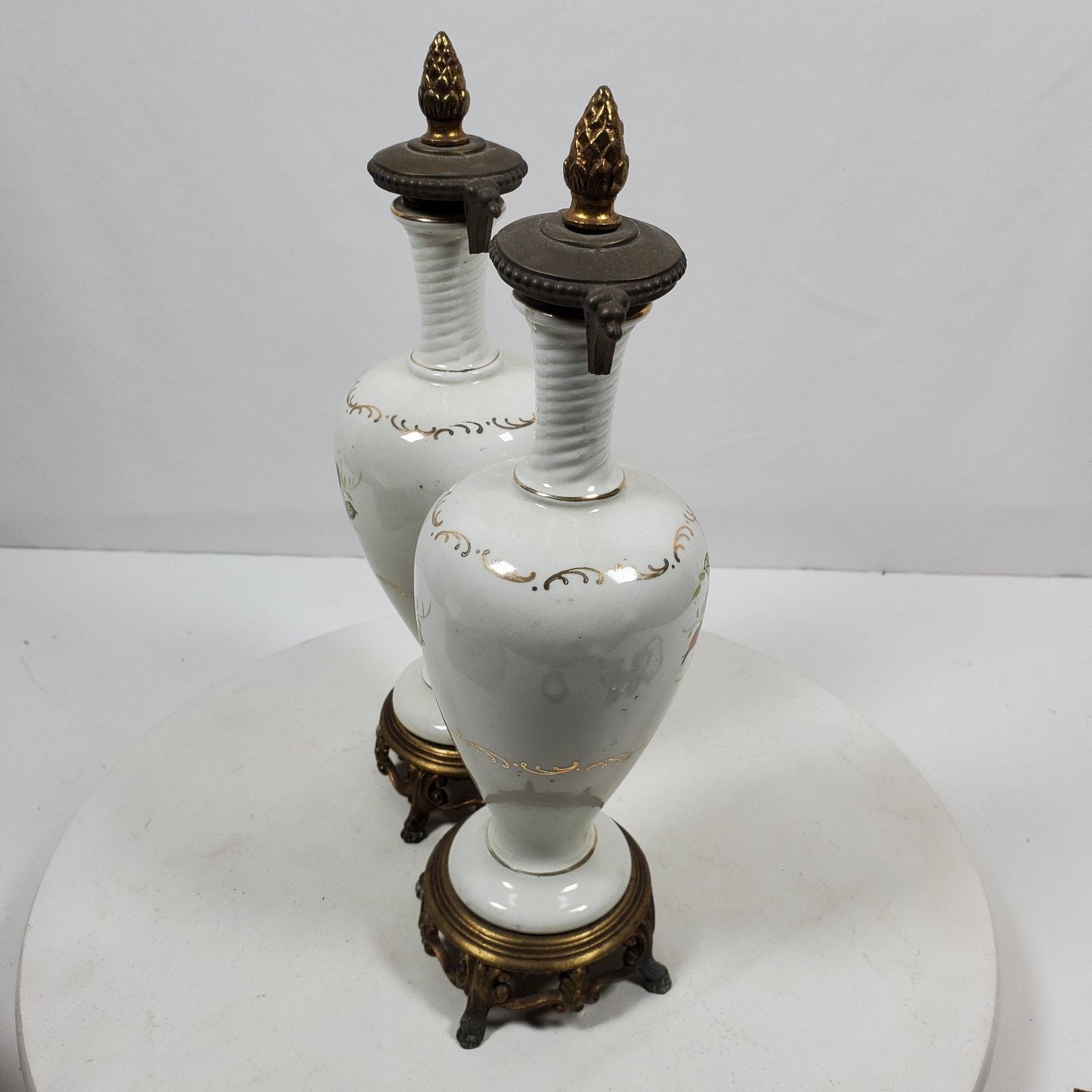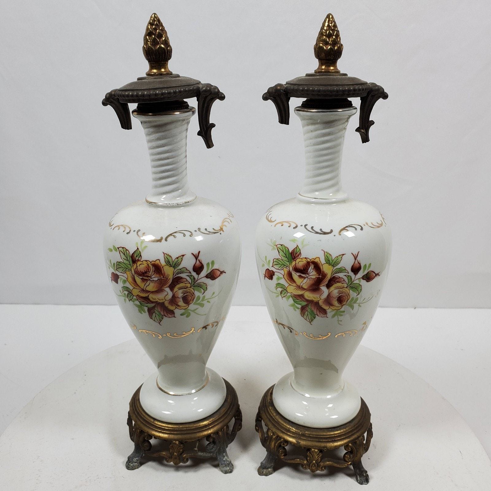 Antique Table Lamps Porcelain Victorian 12.5 Inch Tall Gold Trim NO WIRING