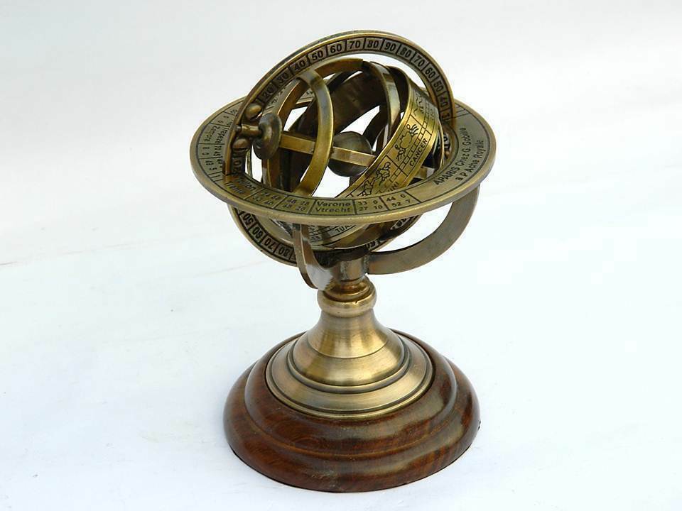 - ANTIQUED SOLID BRASS DEMONSTRATIONAL ARMILLARY SPHERE Nautical & Collectible