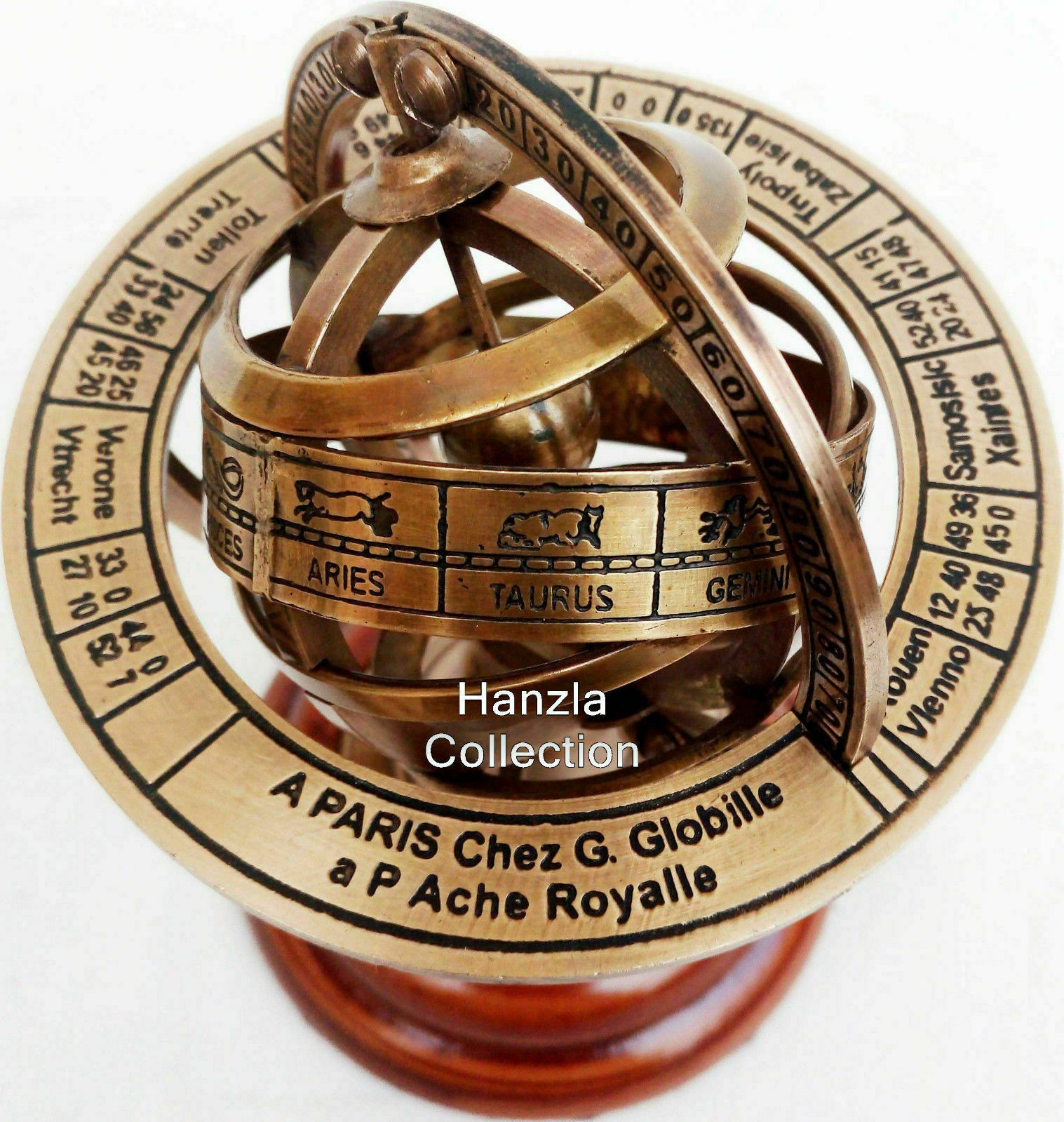 ANTIQUED SOLID BRASS DEMONSTRATIONAL ARMILLARY SPHERE Nautical & Collectible