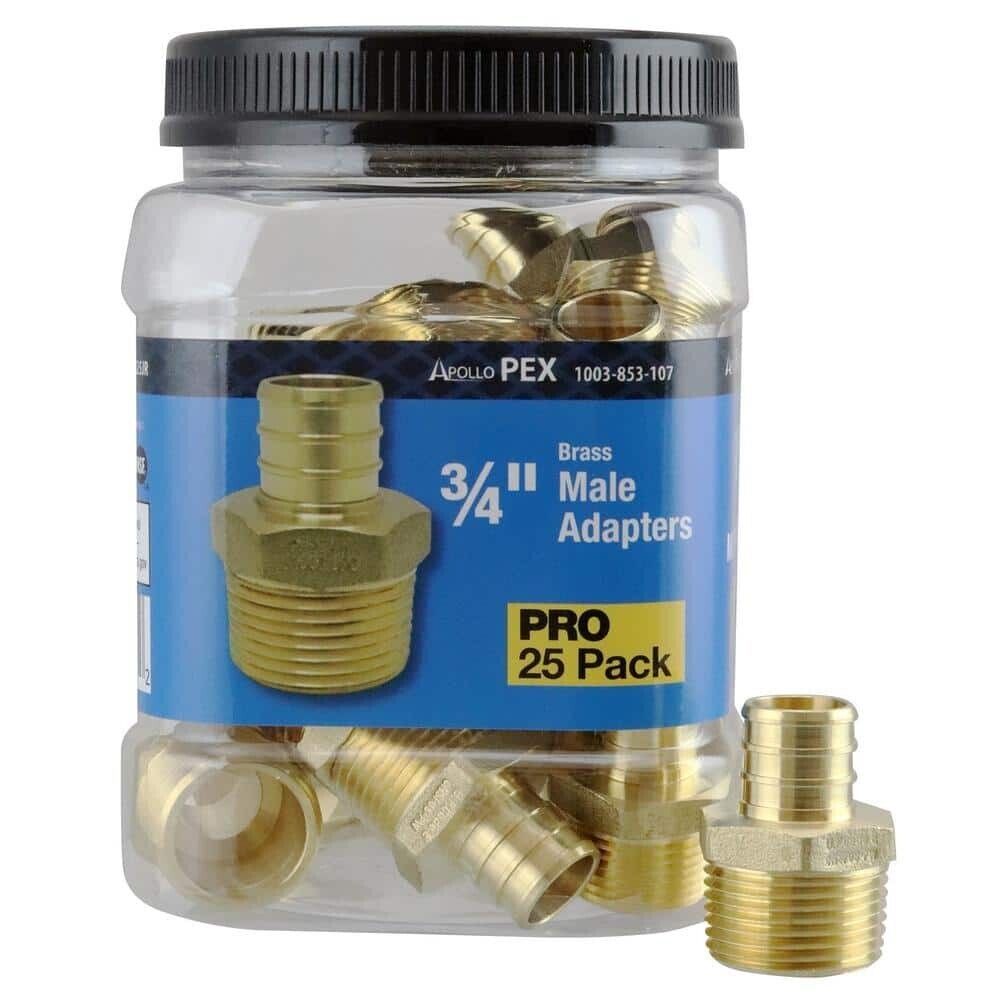 - Apollo 3/4 in. Brass PEX-B Barb x Male Pipe Thread Adapter Pro Pack (25-Pack)