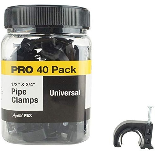 The ApolloPEX 1/2 in 3/4 in. 2-in-1 PEX Pipe J-Hook Pipe Support (40-Pack) is innovative and simple to install. It features a unique collar design for the securing of either 1/2 in. or 3/4 in. PEX pipe to joists or studs. The ApolloPEX system is a comprehensive piping system comprised of brass fittings, poly alloy fittings, manifolds, valves, fasteners, tools and tubing designed for implementation in water delivery systems, simple or complex.
