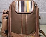 This Apollo Walker Picnic Backpack is the perfect accessory for any outdoor meal. With a brown and striped pattern, it has a stylish look that will complement any food and drink theme. The backpack is made of durable polyester and has a water-resistant feature for outdoor use. It has a six-inch depth, fourteen-inch height, and ten-inch width, making it the ideal size for carrying two servings of cutlery.