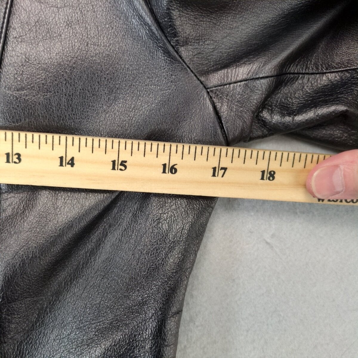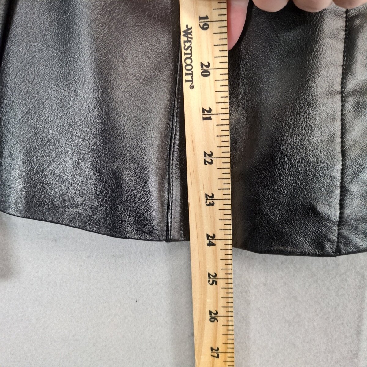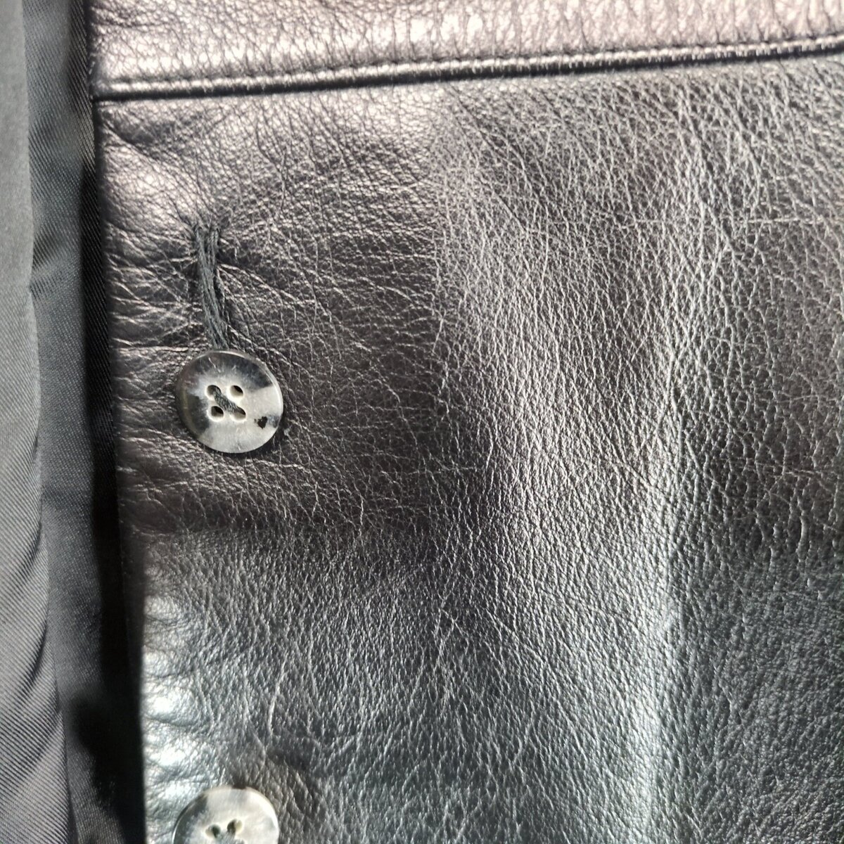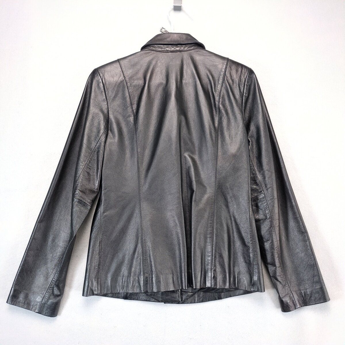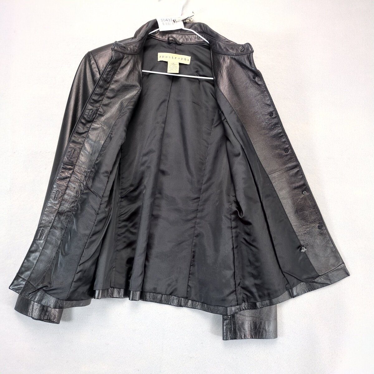 Apostrophe Black Genuine Leather Jacket Women's 4 Concealed Buttons Collared Condition: Good pre-owned condition as shown in photos. No foul, pet or smoke odors. One of the threading on the buttons is loose. Has a few random scratches. Features: Jacket Type, Slim Fit, Collared, Lined, Button Closure, Solid Pattern, Short Length, Long Sleeve, No Accents, Dry Clean Only Listed Size: Women's 4 Regular Sizing. Please check measurements as clothing can vary from listed size due to shrinkage or stretching. Style Tags: Classic, Y2K, Vamp, Goth, Punk, Edgy, Grunge, Rocker, Biker, Moto, Rockabilly, Streetwear, Urban, Casual Fast shipping - purchase by 5pm EST and we ship out the next business day!