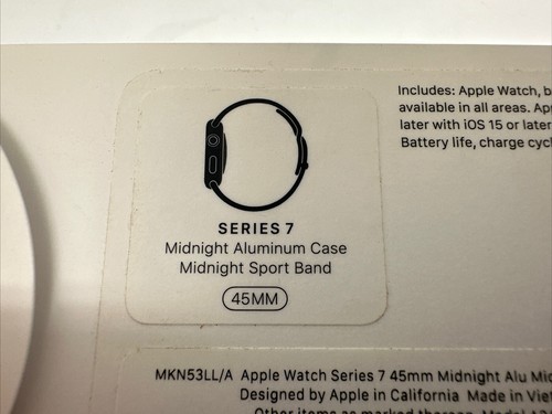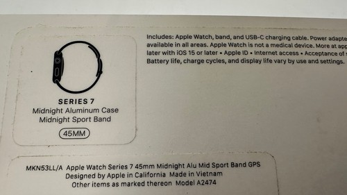 - Apple Watch Series 7 45mm Midnight Aluminum Mid Sport Band GPS.