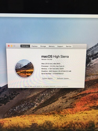 Apple iMac 21.5" A1311 Core I5 2.5GHz 4GB RAM 500GB HDD High Sierra