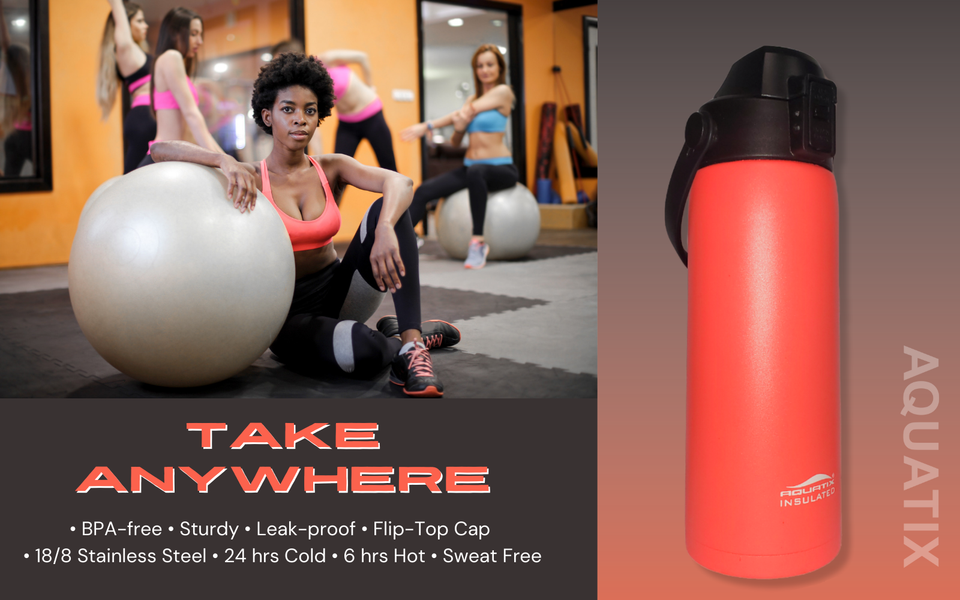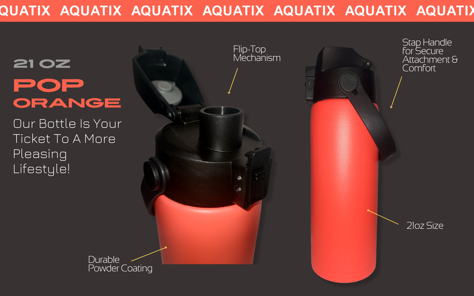 end_display_feedback_code_window Best Stainless Steel Water Bottle Or Your Money Back! - If Our 100% Pure Stainless Steel Sport Water Bottle (with No Plastic Lining Or Dangerous BPAs) Isn't The Best Sport Bottle you have ever tried we will Give You All Your Money Back! 100% GUARANTEED!!! KEEP DRINKS COLD FOR 24 HOURS, HOT FOR 6 -Our double-walled vacuum insulation technology keeps your drinks ice cold up to 24 hrs and toasty warm up to 6 hrs. Enjoy cold beverages all day long at work, during those long events, or at the beach! Engineered To Stay Dry Not Leak - Our 21 oz Bottle Has Been Specially Engineered To Stay Dry And Not Leak. Stop Worrying About Liquids Sweating In Your Bag Or Purse, Our Bottle Is The Answer! 100% Pure 'true' Stainless Steel - Keep Drinks Cold 24 Hrs, Hot 6 Hrs don't Be Fooled By Imitators! Our Bottle Is Toxin-free, Food Grade Stainless Steel On Both Inside And Outside Walls! You Won't Have To Deal With Rust, Leaking, Dents, Or Issues That You Will With Cheap Imitators! Wide Drip-free Mouth With Non-leaching Cap -you Won't Find A Stainless Steel Water Bottle With A Better Design Anywhere Else Online. Treat Yourself To A Product That Actually Works! Our Bottle Is Your Ticket To A More Pleasing Lifestyle! The Aquatix Sporty 21 oz Double Wall Insulated Stainless Steel Water Bottle is perfect for use at the gym, at the office, around your house and anywhere you need to take your beverage of choice with you. Made from durable and sturdy PREMIUM QUALITY, Top Chef 18/8 FOOD GRADE STAINLESS STEEL, this Aquatix Sporty 21 ounce water bottle is a great eco friendly sports bottle. The double wall insulated water bottle is PERFECT for carrying while walking, hiking, camping, use at the gym or just on the go- as it fits MOST car cup holders. No more spills and messes while driving! Ditch those plastic water bottles! GO HEALTHY with this BPA Free, FOOD GRADE stainless steel water bottle that holds a large capacity of liquids 21 fluid ounces and no longer worry about toxins and chemicals leaching into your beverage. Drink crisp, clean, healthy and refreshing drinks from Your Aquatix Water Bottle every time. Just Fill and Go! This sporty bottle features a flip top spout drinking mechanism allows the ease of staying hydrated even while on the go! The flip cap top provides single-handed drinking ability and is perfect for your busy life on the go! Stay hydrated and DRINK MORE WATER with this large capacity 21 ounce water bottle. Double vacuum insulated wall construction contributes to hot teas, soup, coffee or other blends being consistently hot for up to 6 hours. And, for cold water, smoothies, soft drinks, or anything you may need very cold, 24 hours of insulated confidence, guaranteed cold, period! The bottle will not "sweat", meaning it will not create condensation which may leave a "ring" of liquid on your expensive buried walnut side table. Easy to hand wash or clean, NO aftertaste after cleaning. COLD LIQUIDS or HOT LIQUIDS! This is a double wall insulated water bottle that is made of 18/8 food grade stainless steel water bottle! No other bottle has all the features of our Aquatix Sport Bottle!