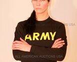 This is the Standard ar 670-1 Authentic Army PT Shirt for COLD WEATHER APFU. This physical training (PT Gear) LONG sleeve t-shirt is athletic Black with "ARMY" on front . The Army emblem is Gold .