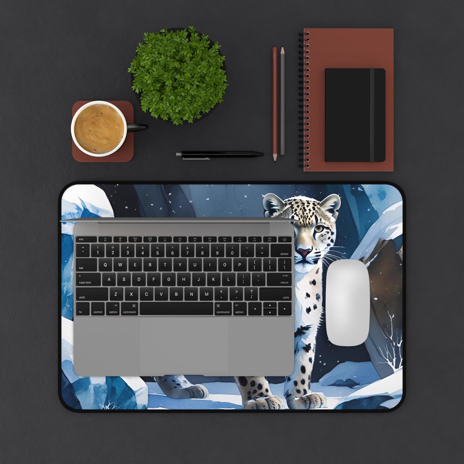- Arctic Snow Leopard Desk Mat, Wildlife Office Decor, Gamer Mouse Pad, Animal Art