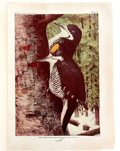 Arctic Three Toed Woodpecker 1936 Bird Art Lithograph Color Plate Print DWU12D