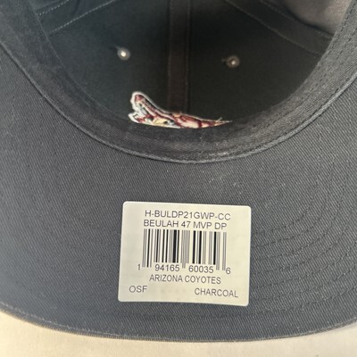 Show your support for the Arizona Coyotes with this stylish adjustable hat from ?47. The hat features the team's logo prominently displayed on a dark gray background, making it easy to spot your team spirit at the game or on the streets. Its one-size-fits-all design ensures a comfortable fit for all, while the quality materials promise durability and long-lasting wear. As an officially licensed NHL product, this cap is perfect for any hockey enthusiast looking to represent their favorite team. The cap is versatile enough to pair with any casual outfit, making it a great addition to any fan's collection. Whether you're at the arena or out and about, this hat is a subtle yet fashionable way to show your allegiance to the Coyotes.