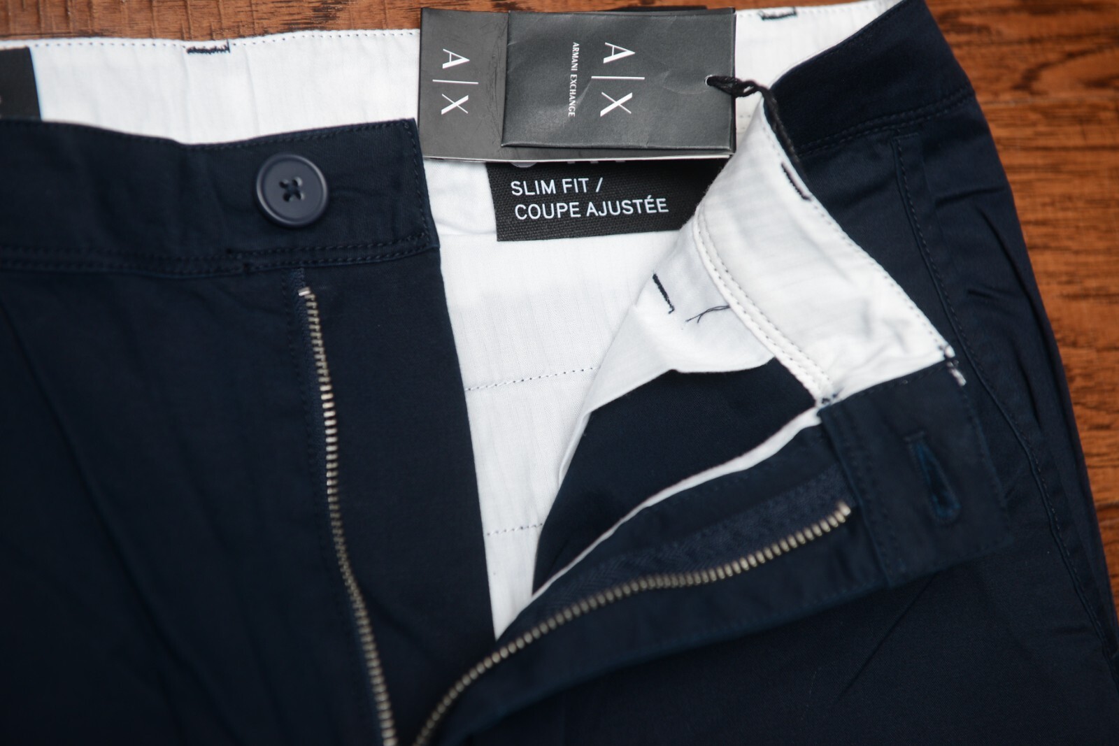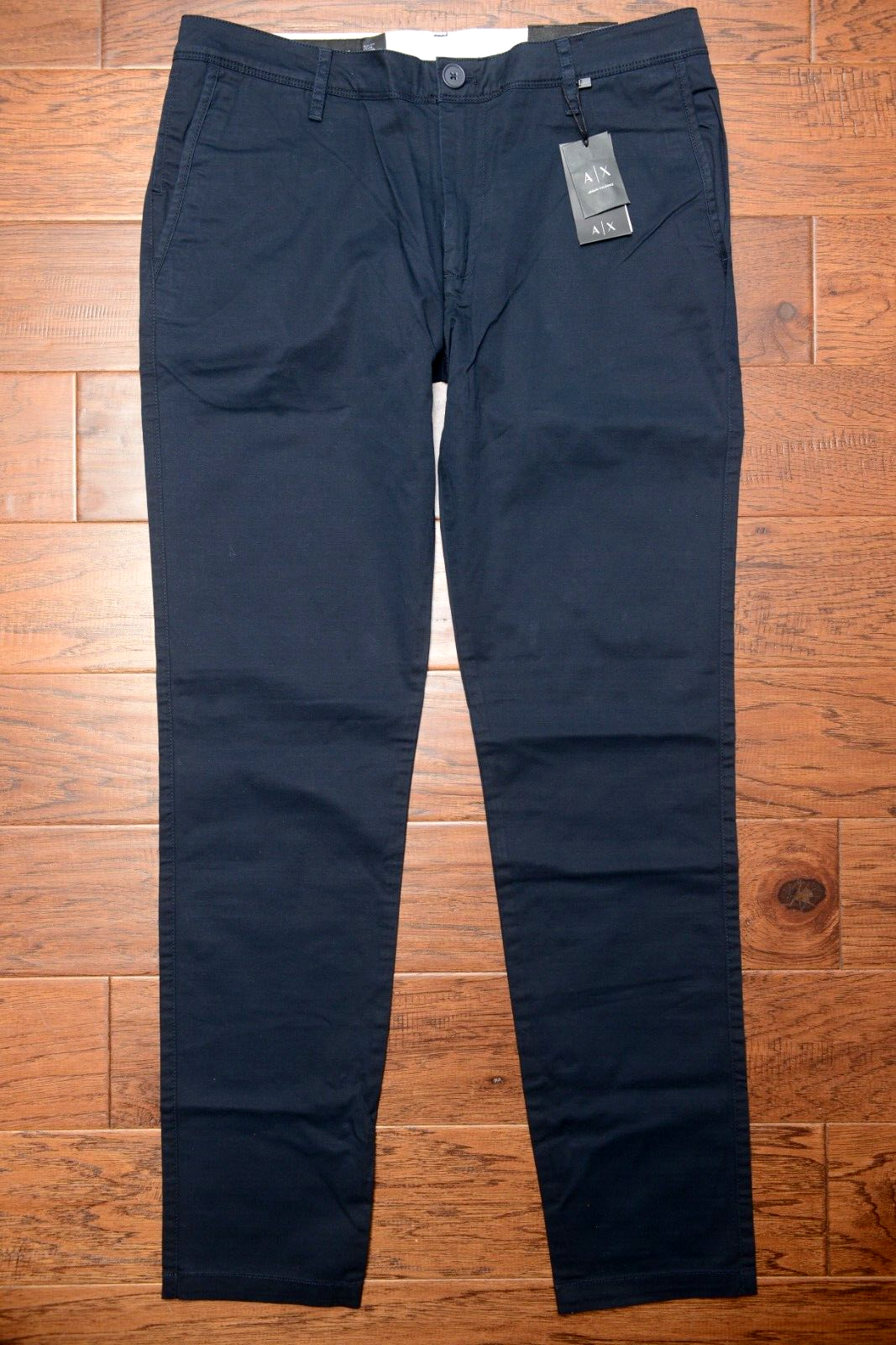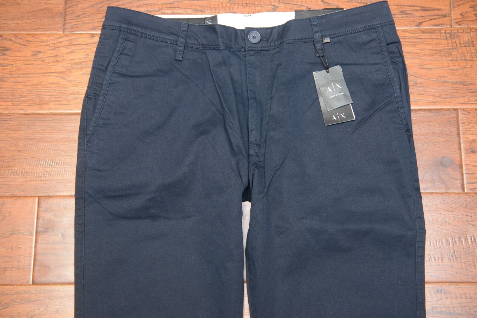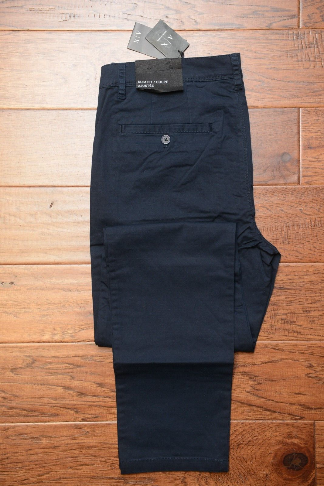 - Armani Exchange A|X P45 Men Slim Fit Navy Stretch Cotton Chino Pants Trouser 33R
