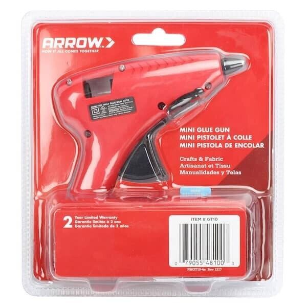 You are Buying Brand New And Factory Sealed Arrow Mini Glue Gun Includes 10 free glue sticks...household repairs to school and crafting projects, this glue gun delivers great performance at a great price. Comes with 10 free glue sticks. Trigger feed mechanism, Uses mini glue sticks, Integrated safety fuse, Self limiting heat, chamber. Built in retractable stand, Extra-long cord. Comes with 10 free glue sticks....