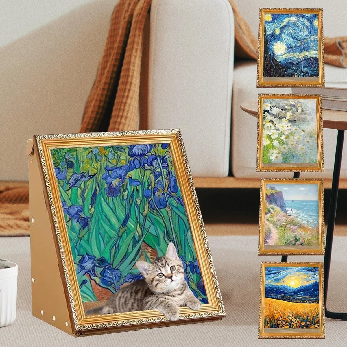 - Art 3D Oil Painting Cat Nest for Artist Kitten Cat Bed with Scratching Pad Iris