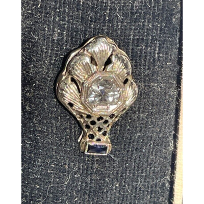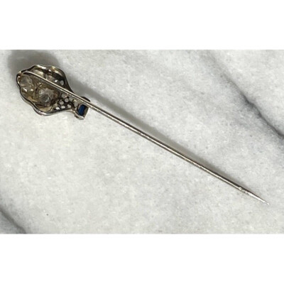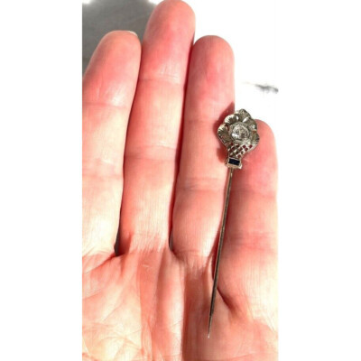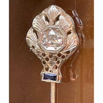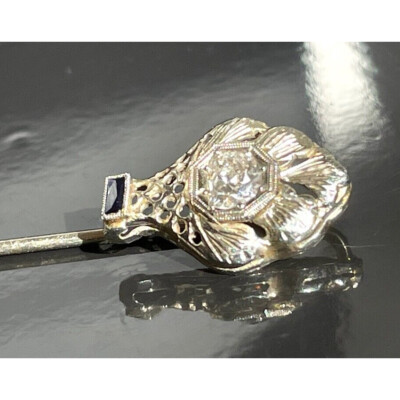 - ART DECO 18K WHITE GOLD 0.25 CARAT DIAMOND SAPPHIRE STICK PIN WITH BOX SKY