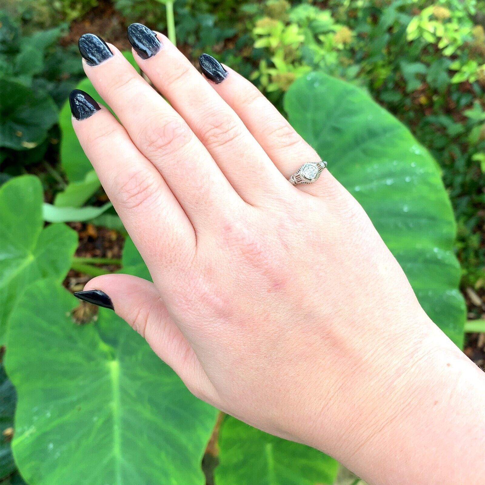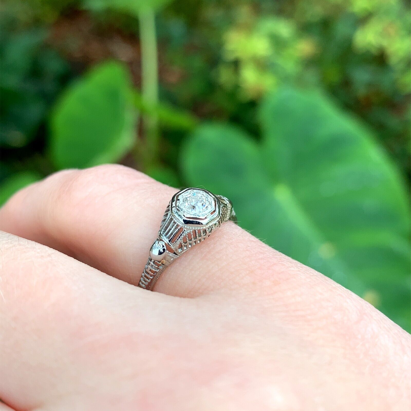 - Art Deco 18k White Gold Filigree .16ct Genuine Natural Diamond Ring (#J6182)