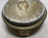 - Art Deco glass Powder Box Pewter Metal Mirrored Lid With Victorian portrait