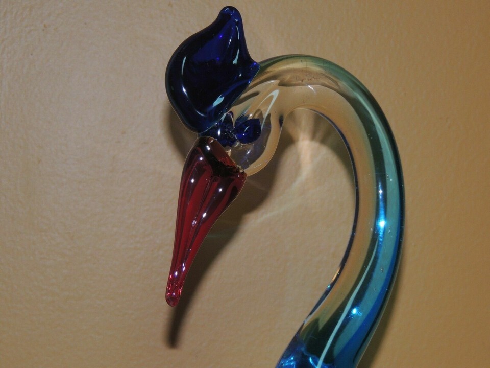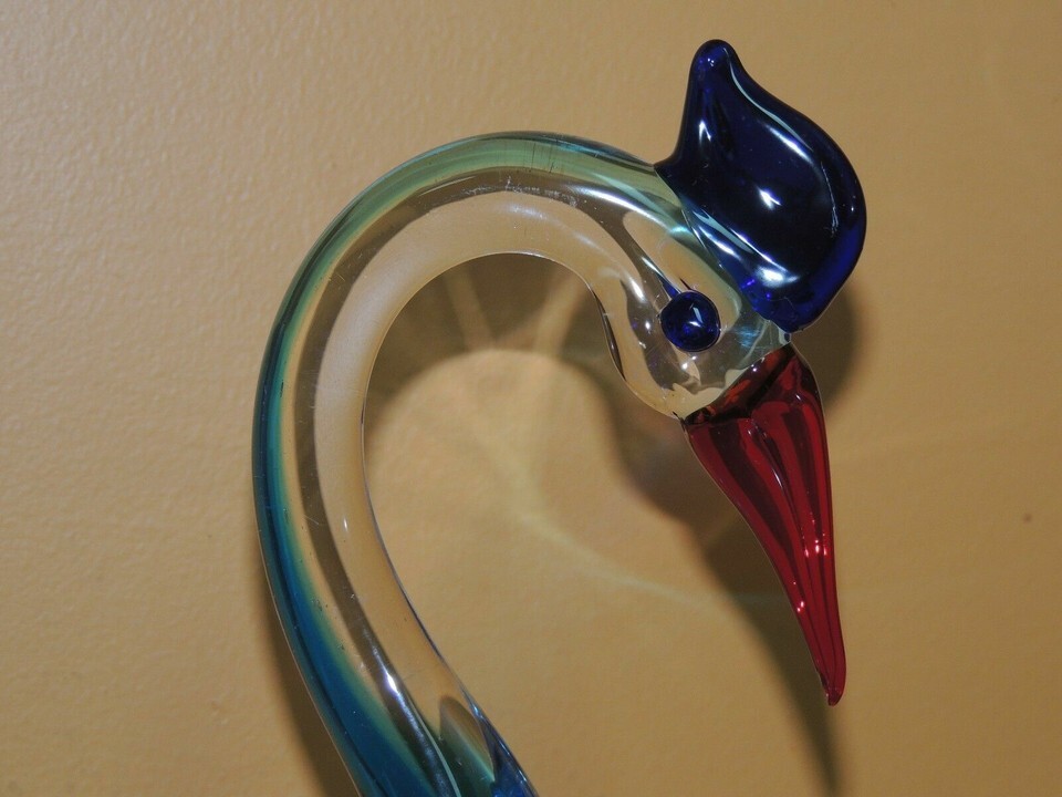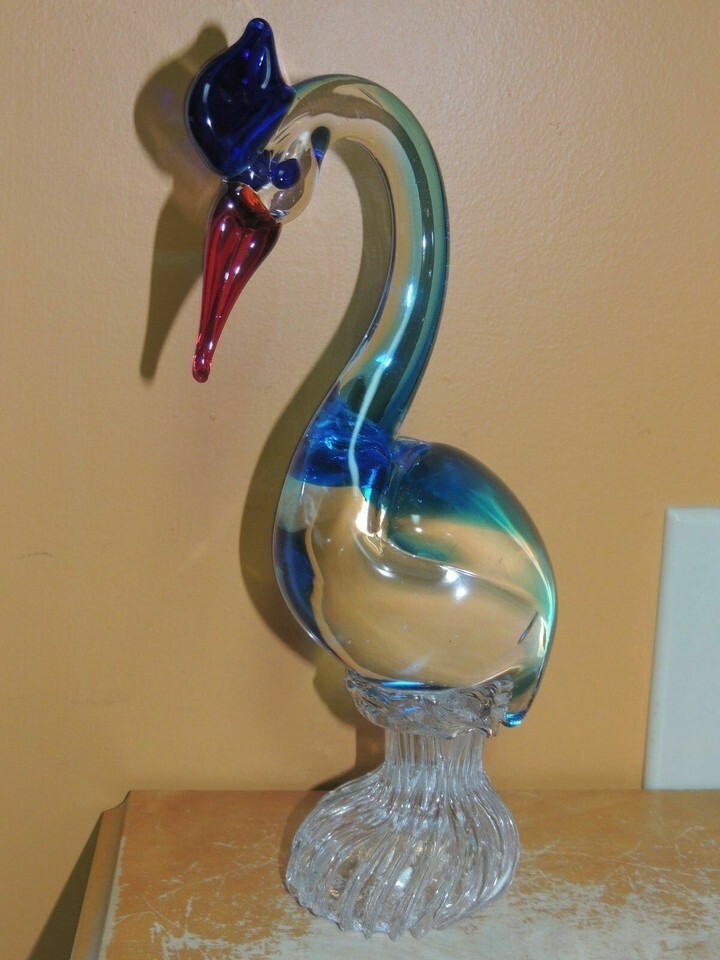 - Art Glass Crane / Bird Red & Blue 11" sommerso unmarked Italian Murano