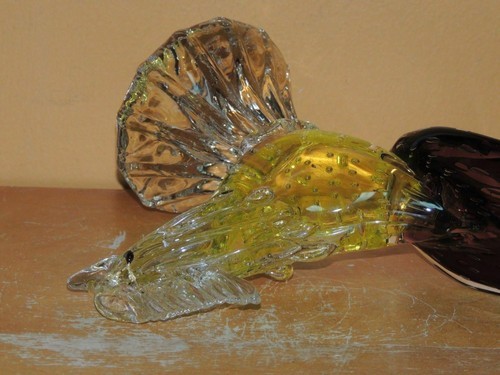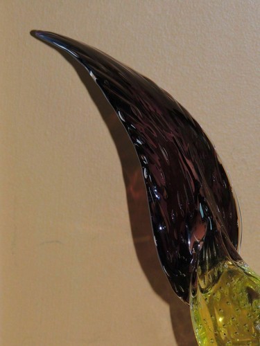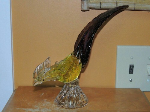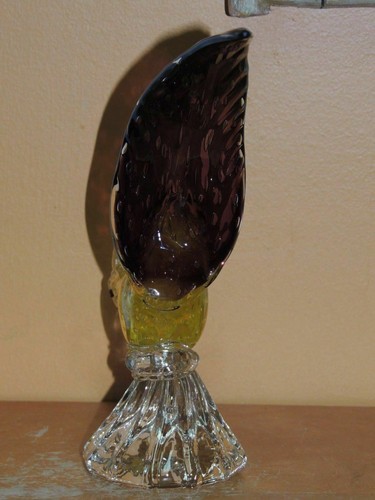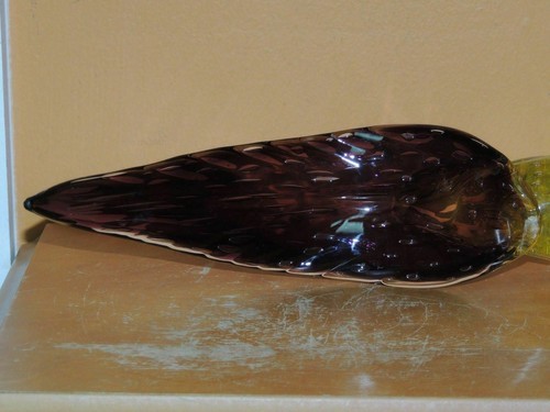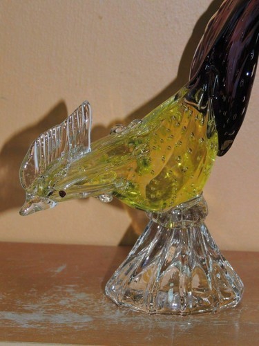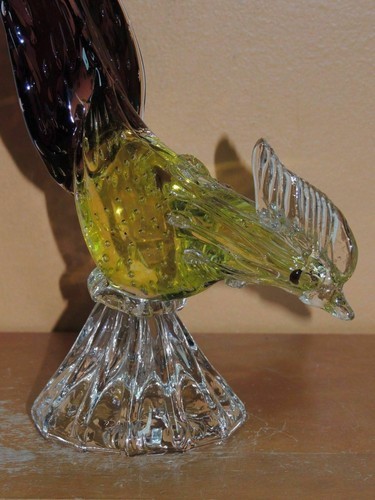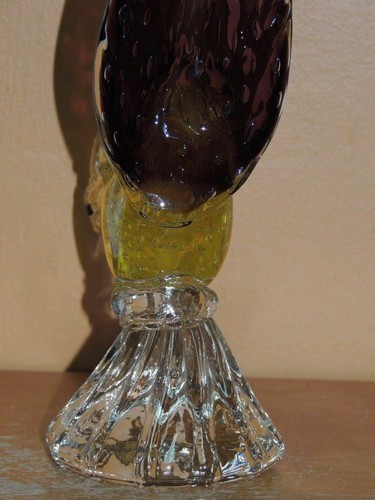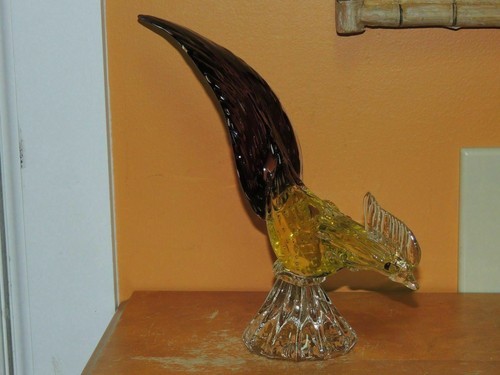 - Art Glass Quail / Bird Purple Yellow gold 8.5" bulicante unmarked Italian Murano