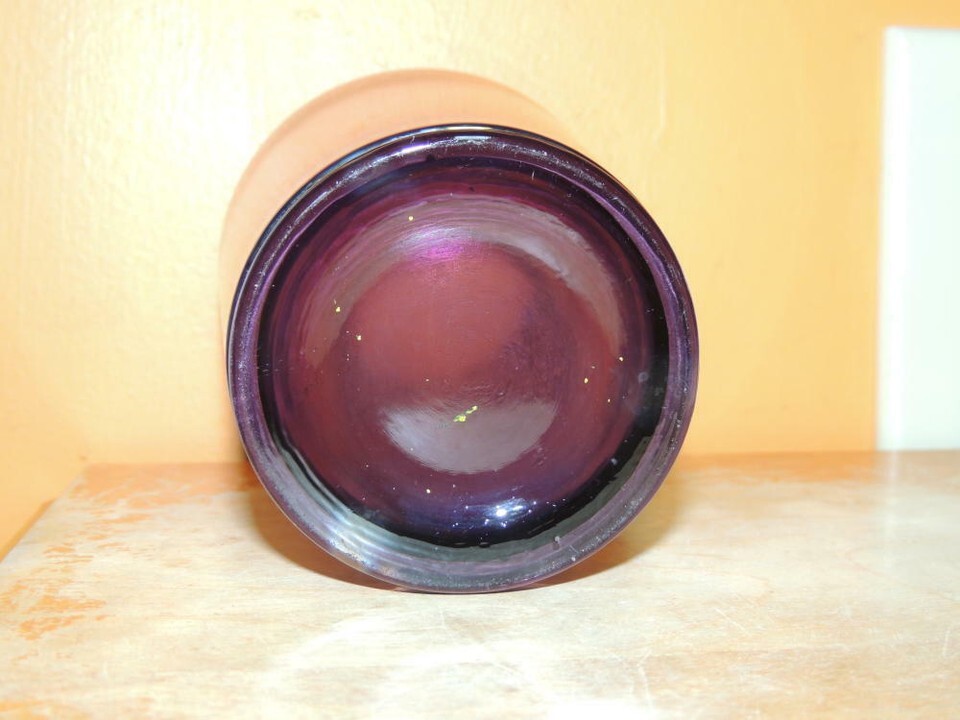 - Art Glass Vase 5.5 Purple / Amethyst Iridescent Carnival antique art deco era