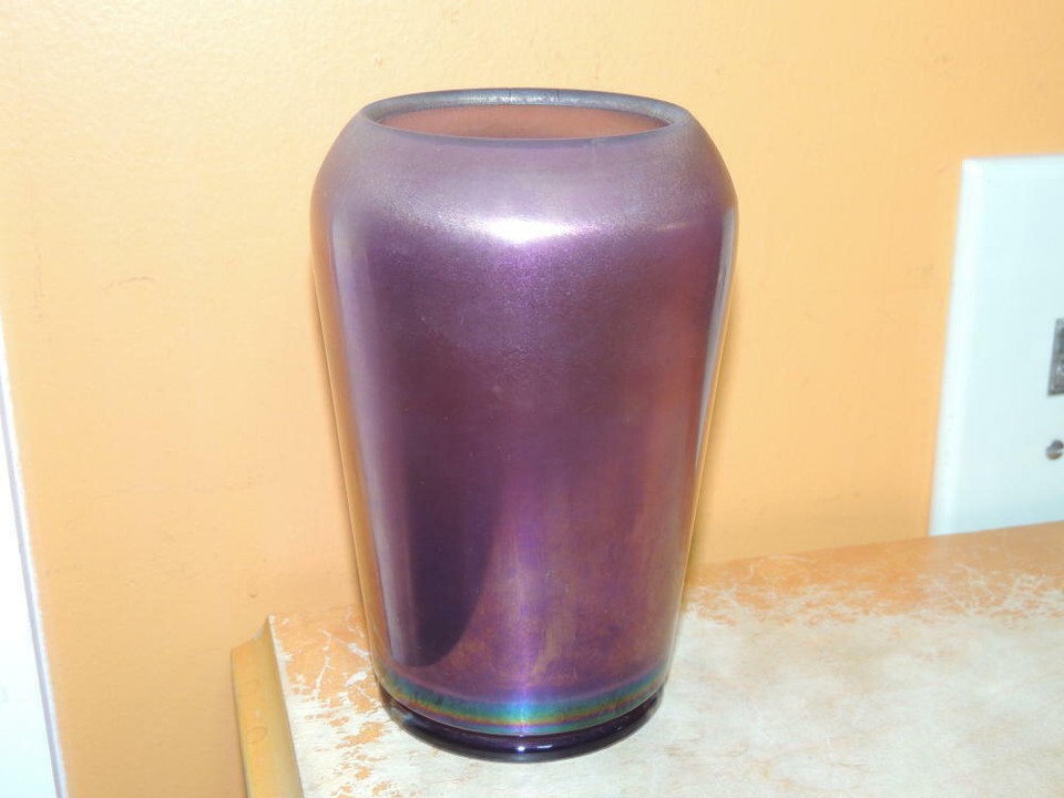 Art Glass Vase 5.5 Purple / Amethyst Iridescent Carnival antique art deco era