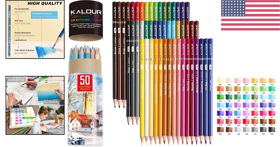 Primary image for Artist-Grade Colored Pencils Set with 50 Vibrant Colors for Blending & Shading