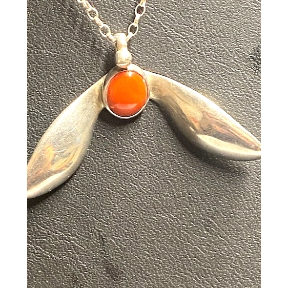 - ARTIZAN 925 STERLING SILVER AND CORAL FISH TAIL PENDANT NECKLACE SKY