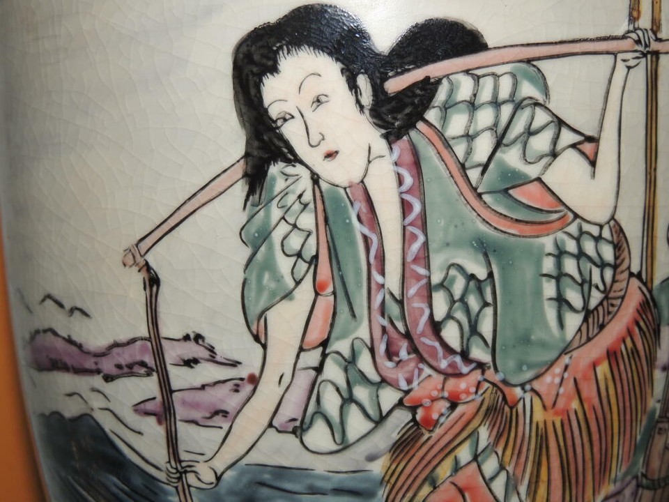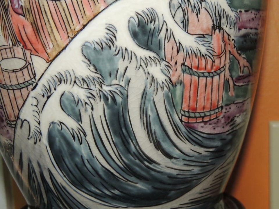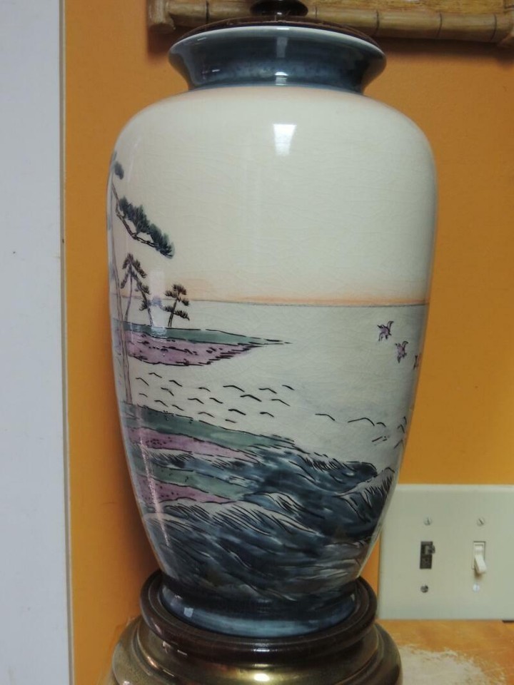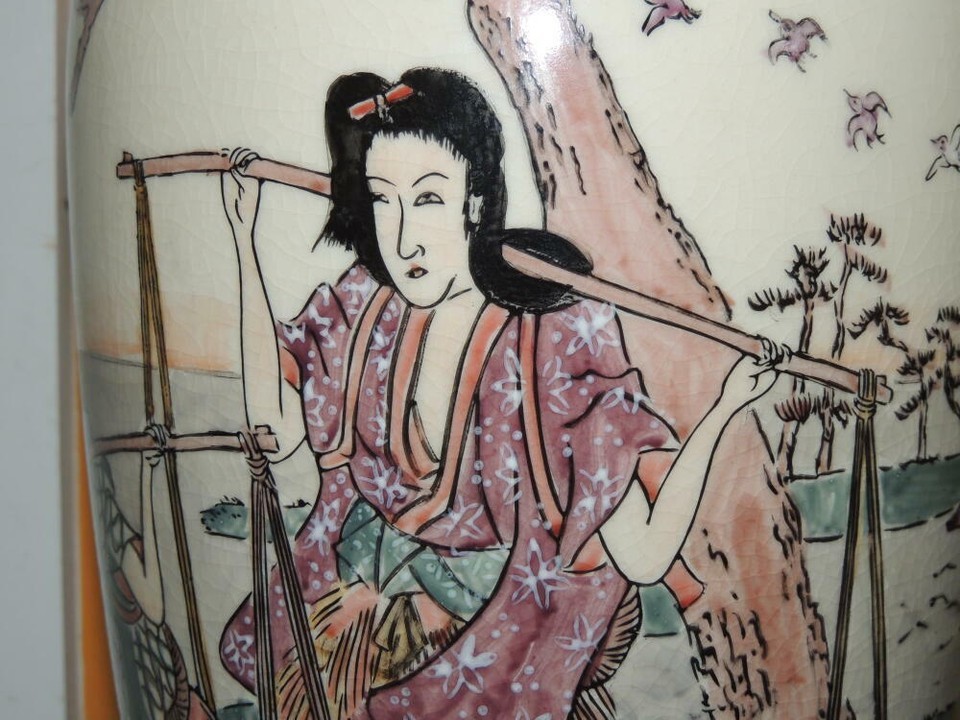 - Asian 35" Lamp Hand Painted Vase women yoke & water buckets Juniper Tree Vintage