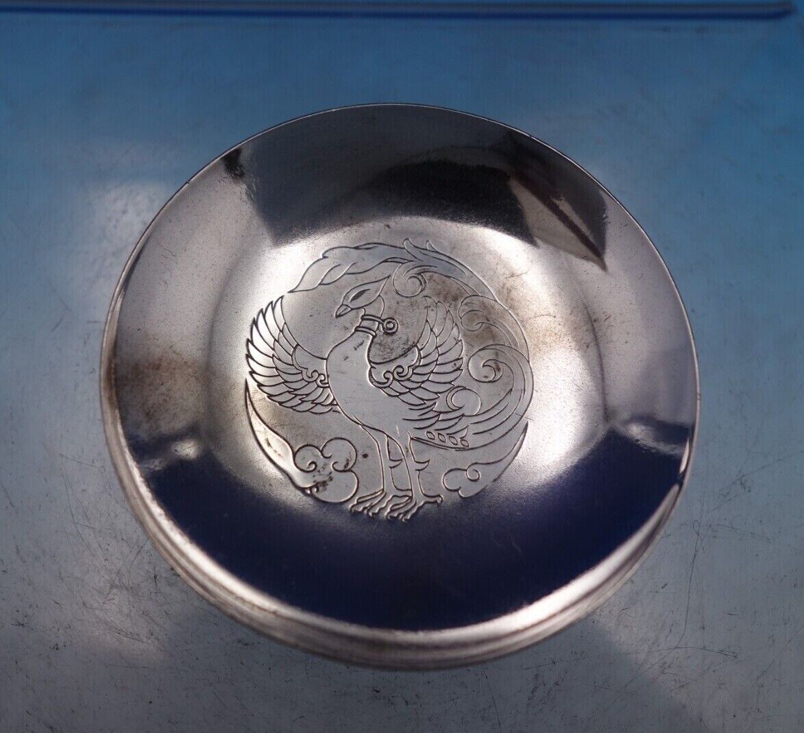 Beautiful Asian sterling silver bowl featuring an engraved bird (maker unknown). This piece measures 3/4" tall x 2 1/2" in diameter and weighs .83 troy ounces. It is not monogrammed and is in good vintage condition as shown in the photos. Terrific!