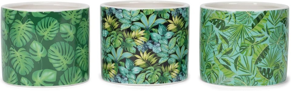 - Assorted Floral Green Ceramic Planter Pots, Set of 3, 4.5-Inch with Witty Say...