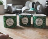 Assorted Floral Green Ceramic Planter Pots, Set of 3, 4.5-Inch with Witty Say...