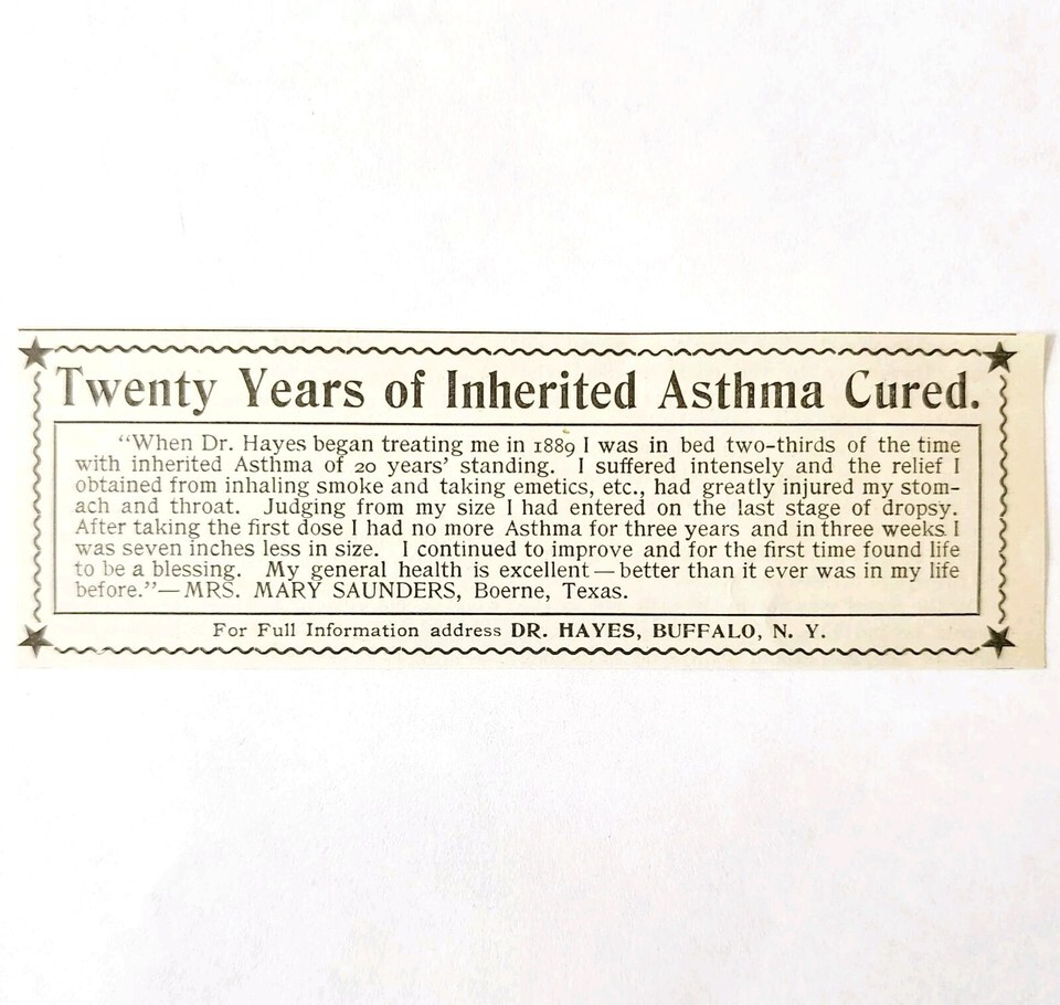 Asthma Medicine Dr Hayes Buffalo NY 1897 Advertisement Victorian Medical ADBN1A4