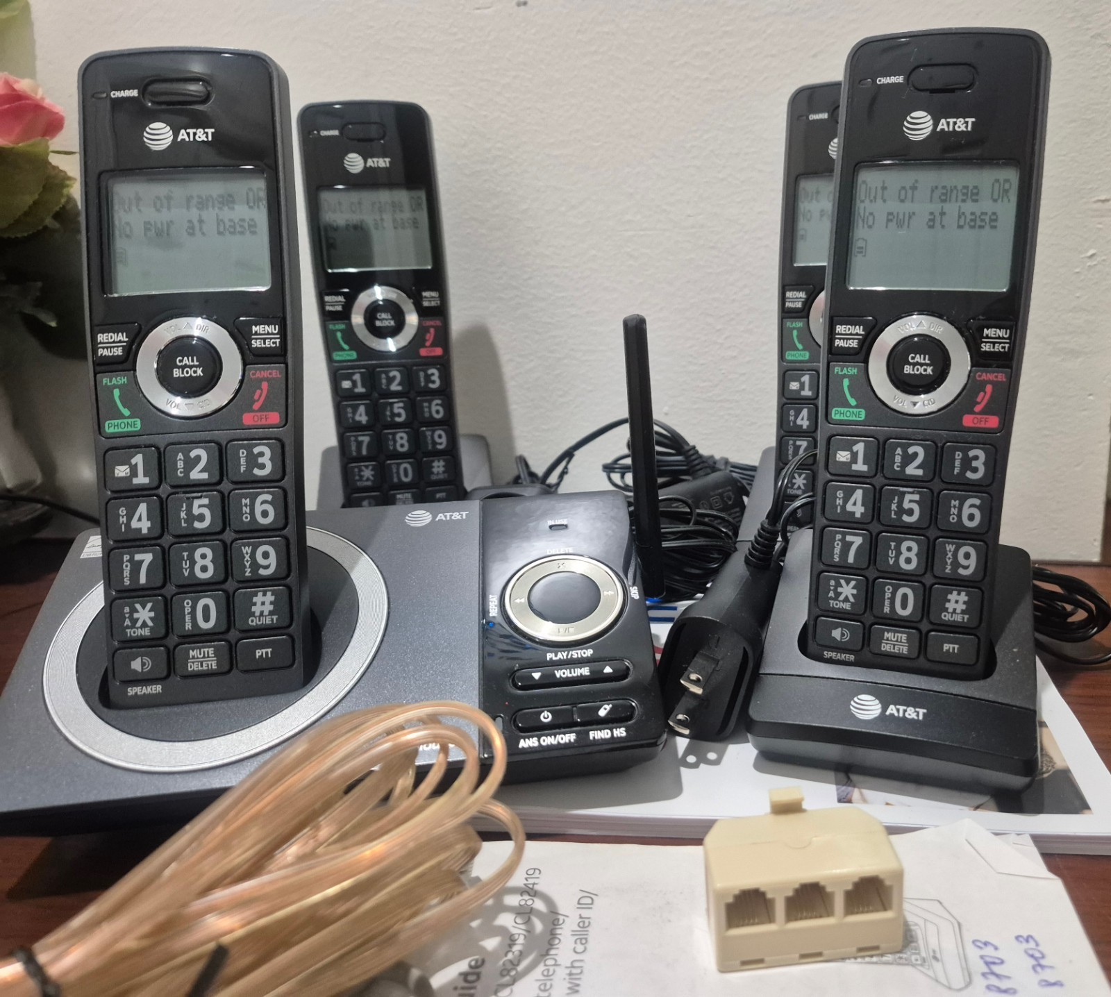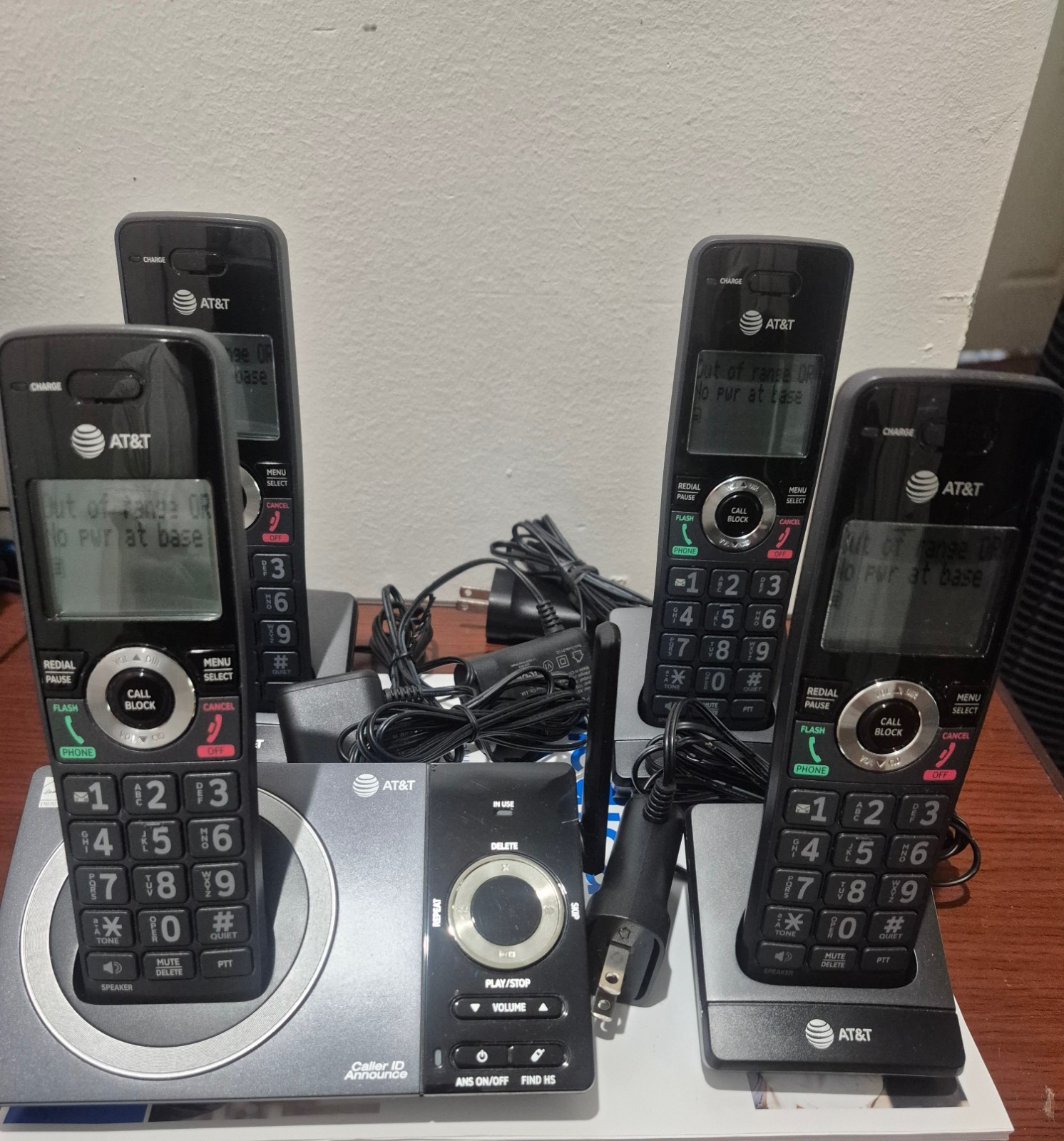 - AT&T CL82419 BLACK CORDLESS PHONE & ANSWERING SYSTEM WITH 1 BASE PLUS 4 HANDSETS