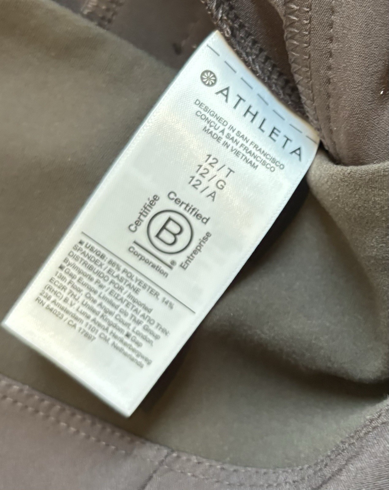Athleta Endless High Rise Pant Truffle Brown Stretch 12T Textured Tapered Travel