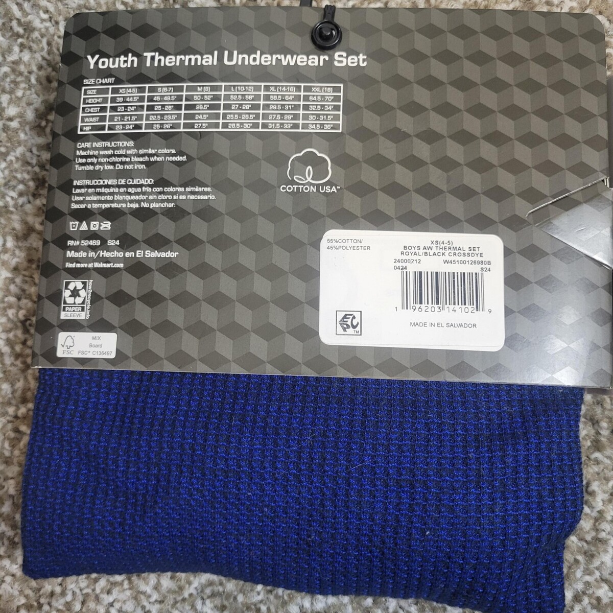 - Athletic Works Youth Boys Light Royal Blue Thermal Underwear Set Size XS (4-5)