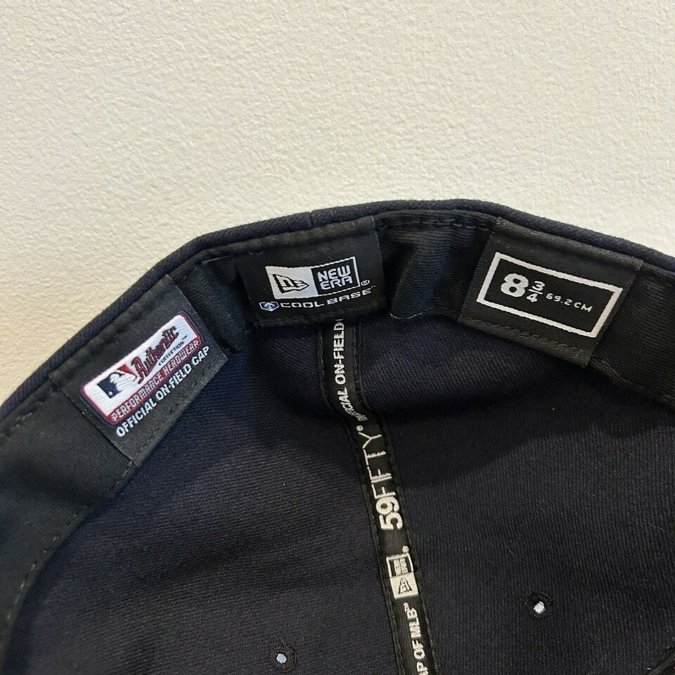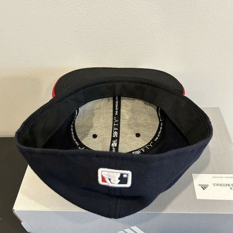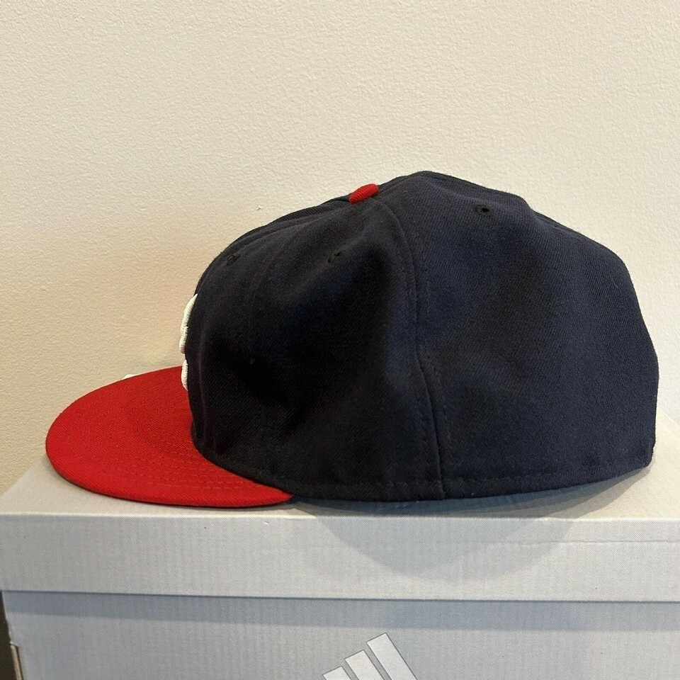 * Atlanta Braves Official On-Field Cap * New Era / Cool Base / 59FIFTY * Size: 8 3/4 * Color: Navy blue with red bill * Material: 100% Polyester * Made in USA * Great condition - no rips stains or tears. See photos for details. Item will ship USPS Ground Advantage unless buyer would prefer to expedite for an additional cost. Please feel free to reach out with any questions!
