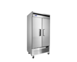 Atosa Refrigerator, reach-in, two-section, 39-1/5"W x 31-7/10"D x 83-1/10"H, bottom-mount self-contained refrigeration, 28.5 cu. ft., (2) locking hinged solid doors, digital temperature control, 35 to 38F temperature range, (6) adjustable shelves, interior LED lighting, automatic evaporation, air defrost, stainless steel interior exterior, galvanized steel back, 4" casters, R290 Hydrocarbon refrigerant, 1/5 HP, 115v/60/1-ph, 3.2 amps, cord with NEMA 5-15P, cETLus, ETL-Sanitation, ENERGY STAR