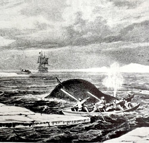 Primary image for Attaching Whale With Harpoon 1926 Nautical Antique Print Whale Hunting DWW4B