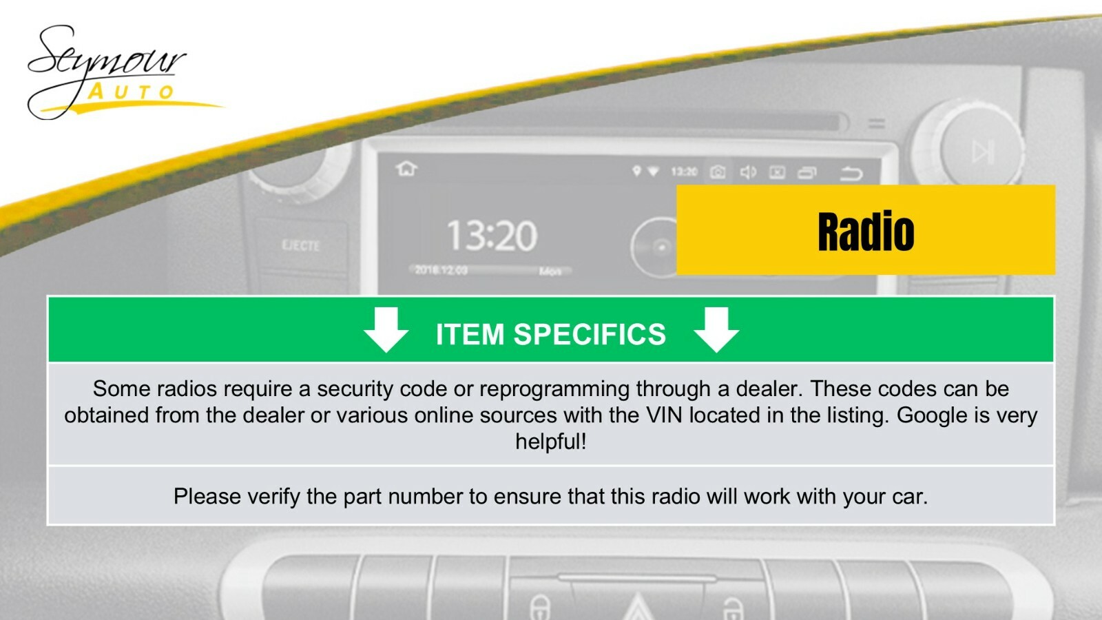 All parts listed as, Pick Up Only, will be held at Seymour Auto Wrecking (107 New Haven Rd, Seymour CT 06483) for the buyer.