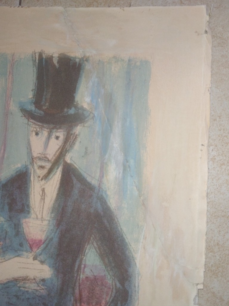 August Frey, 1960 Color Lithograph 35/120 Harlequin, Masked People at Ball 65x50