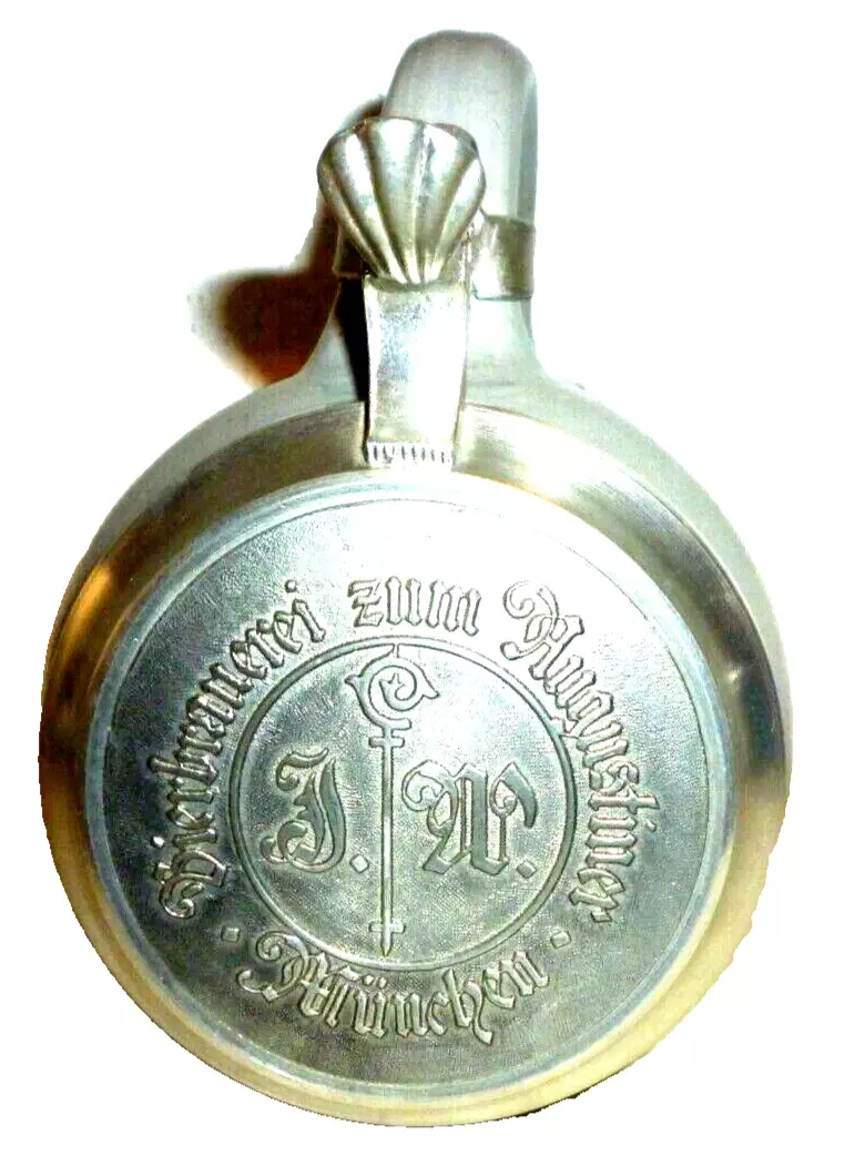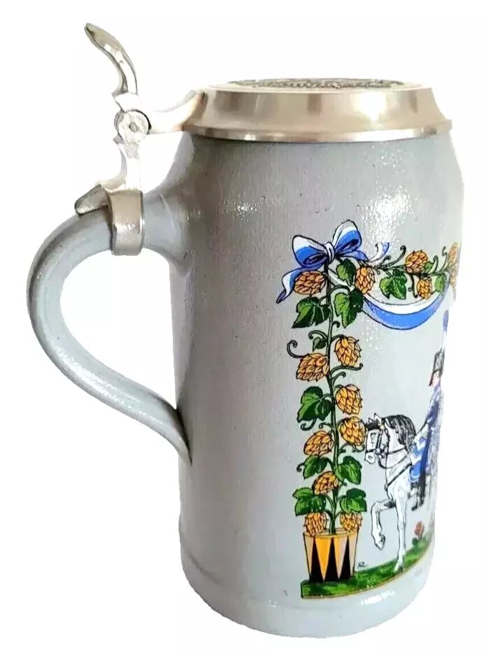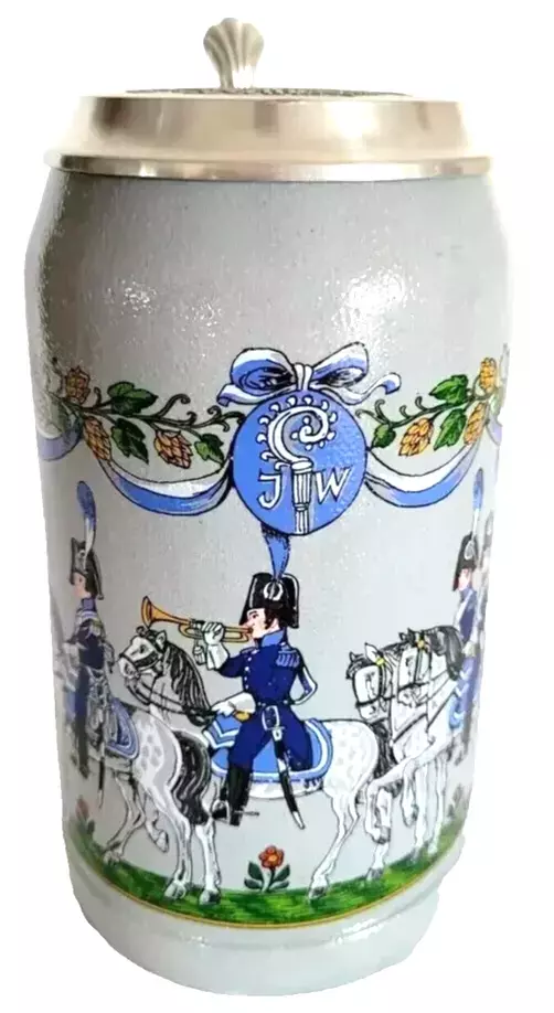- Augustiner Brau Münchner Burgerkavallerie 1810 lidded Masskrug German Beer Stein