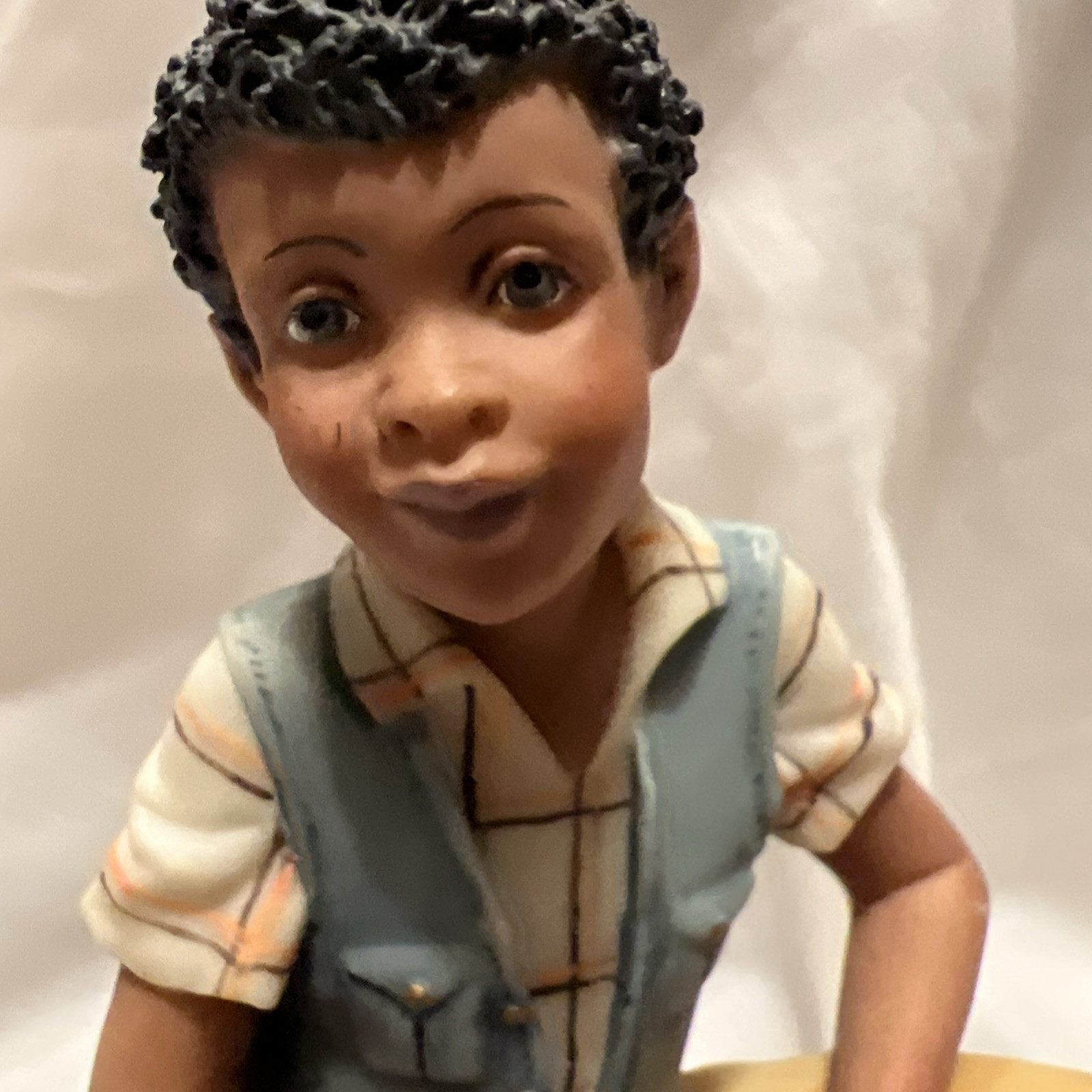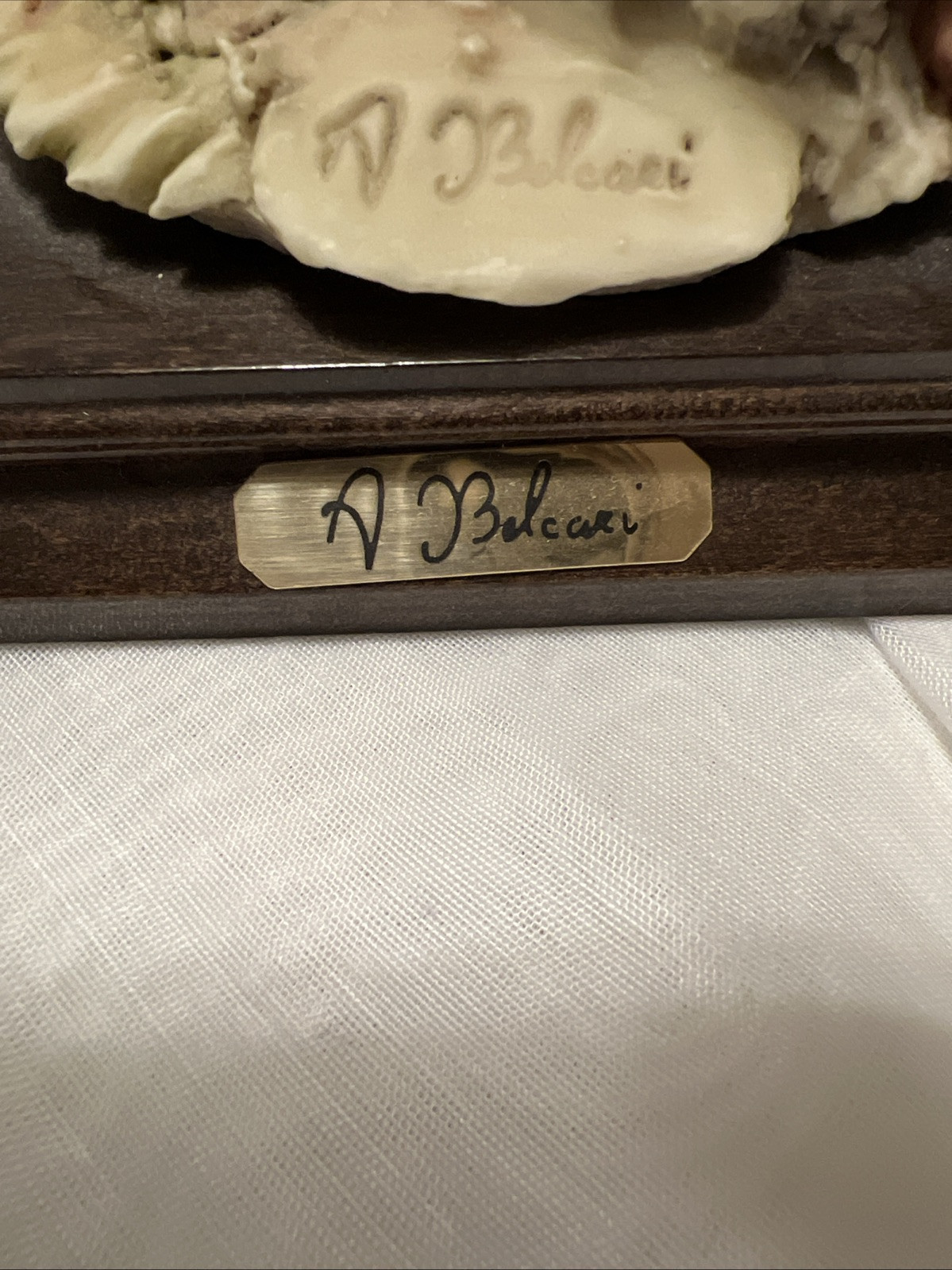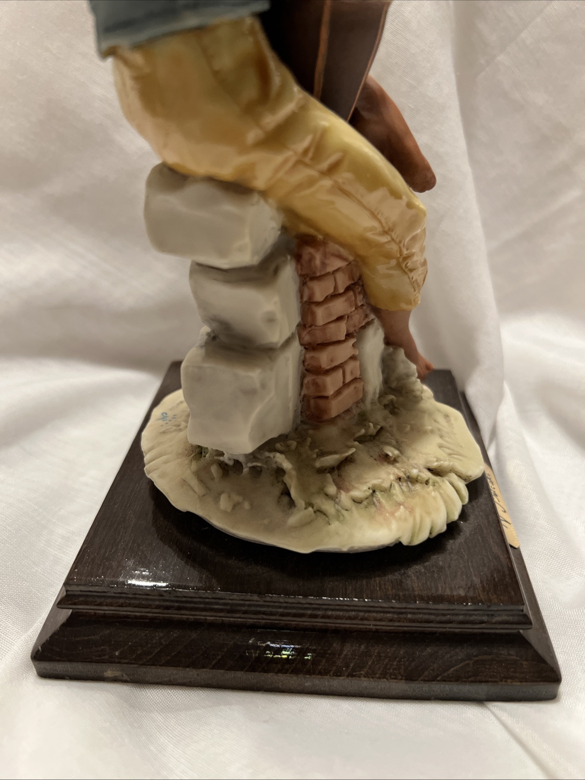 This vintage figurine statue is a small resin sculpture created by A Belcari in 1987 in Italy. The piece features a boy playing a bongo drum and is signed by the artist. It is part of the "Boy Playing Bango" collection and showcases a colorful and detailed design. Perfect for collectors of decorative figurines, this unique piece captures the essence of musical joy and craftsmanship from the 1980s.