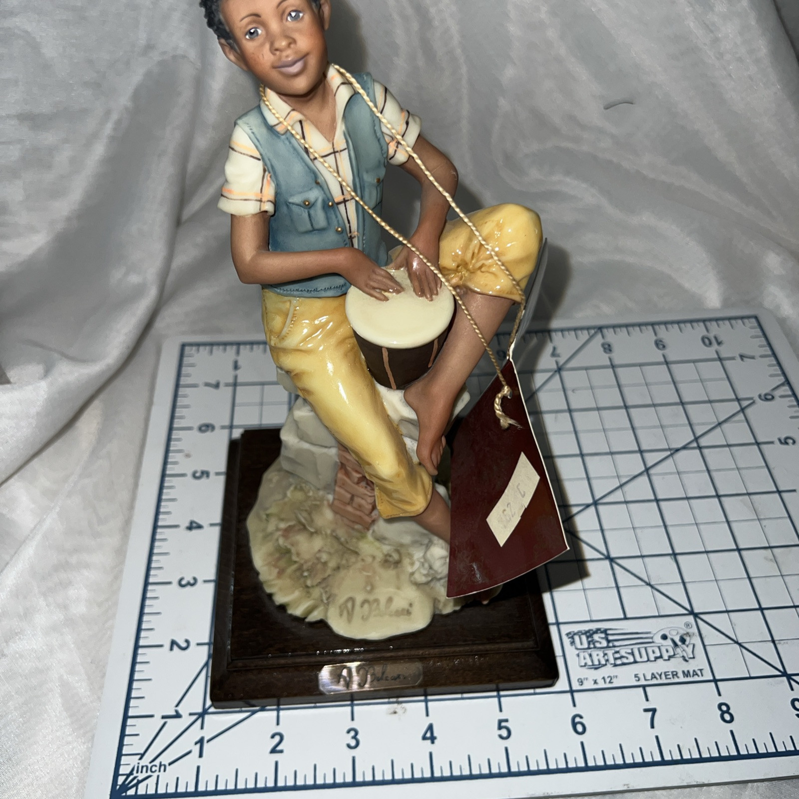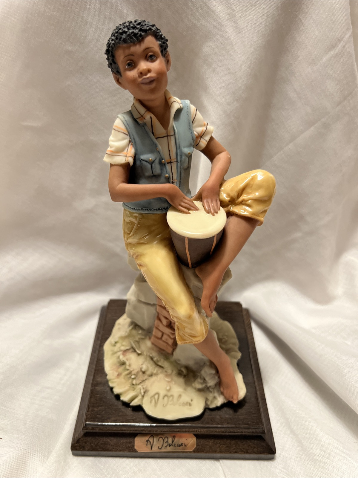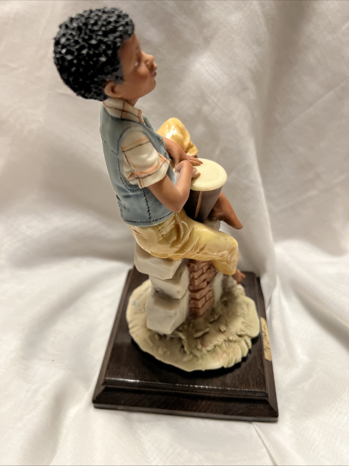 - AURO BELCARI 1987 SIGNED FIGURINE STATUE BOY PLAYING BONGO DRUM ITALY