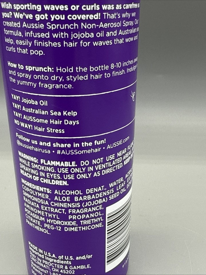 Aussie Sprunch with Jojoba Oil Sea Kelp Non-Aerosol Hairspray 8.5 fl oz See pictures for actual item and ingredient list.