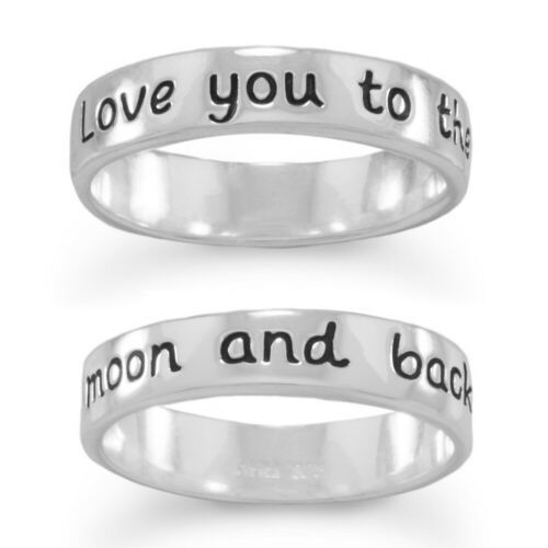 - Authentic 925 Sterling Silver 4.5mm Love You To The Moon And Back Polished Ring