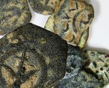 JUDAEA Hasmonean Kings Yehohanan (John) Hyrcanus I King of Judaea 135-104 BC. In circulation during the life of Christ Jerusalem mint. These and similar Hasmonean dynasty coins--such as the Widow's mites from the same time and referenced in Mark 12:42-44 and Luke 21:2-4 Jesus tells the story of the Widow who gave all she had, two "mites" were used in Jerusalem until the destruction of the Temple in 70 AD. ร† Prutah 14mm, 2.11g. Obverse: "Yehohanan the High Priest and the Council of the Jews" (in Hebrew) in five lines within wreath. Reverse: Double cornucopiae adorned with ribbons; pomegranate between horns. Ref. Meshorer Group B, 11; Hendin 457. Very Fine. Right Click picture and select "View/Open..." to see larger image size. T GENUINE Biblical Widow's Mite Ancient HOLY LAND BRONZE COIN JUDAEA Hasmonean Kings Alexander Jannaeus King of Judaea 103-76 BC. In circulation during the life of Christ Jerusalem mint. These small coins "Widow's Mite" are referenced in Mark 12:42-44 and Luke 21:2-4--Jesus tells the story of the Widow who gave all she had, two "mites" -- Mites and similar Hasmonean coins circulated for nearly 200 Years after they were minted and were used in Jerusalem until the destruction of the Temple in 70 AD. As Mentioned in The Bible Authenitc Ancient Biblical Widow's Mite Coin Widow's Mite Coins Minted in Jerusalem mint, JUDAEA 103-76 BC In circulation during the life of Christ Coins pictured are the actual coins being sold--we will randomly pick. Starting quantity is 19 coins. ~ Thank You. *** Price is Per Coin *** Bronze Prutah Coin. Referred to in the New Testament, Mark 12:41-44 "... cast in all she had...". 12-17mm 0.53 to 1.8 gm ~ most c. 1.15g. These are small coins--hence "mite" but on the large size for mites ~ For comparison a U.S. Dime is 17.9mm 2.27gm. Obverse: Star of 8 rays surrounded by diadem. Reverse: Anchor; Greek inscription, ???????? ?????????Y (of King Alexander in Greek). The anchor was adopted from the Seleukid Kingdom, who used it to symbolize their naval strength. Easily the most well known of Alexander Jannaeus' prutah coinages, this issue boldly advertises his status as king while paying attention to Jewish prohibitions against graven images of living things which had evolved since the time of the Yehud coinages in the fourth century BC. While contemporary Seleukid and Ptolemaic kings regularly had their diademed portraits shown on their coins, Jannaeus was forced to content himself with depicting a star - apparently as a cipher for his image - surrounded by a diadem. It is unclear whether the star was meant to give a messianic flavor to Jannaeus' somewhat brutal style of kingship, but the anchor reverse casts him as a successor to dying Seleukid power in the Southern Levant. Widow's mite coins were haphazardly minted with little care to center strike or even fully strike, struck with worn dies, off-center strike on irregular shaped flan--etc. Choice Fine-Very Fine, some with earthen patina with multiple shades of green/olive. Please understand these are Small Coins shown greatly enlarged! Ref. Hendin 469. Meshorer 8. Alexander Jannaeus was a capable ruler and general who often was in conflict with the Pharisees, the son of John Hyrcanus, inherited the throne from his brother Aristobulus I, and appears to have married his brother's widow, Shlomtzion or "Shelomit", also known as Salome Alexandra, according to the Biblical law of Yibum ("levirate marriage"), although Josephus is inexplicit on that point. His likely full Hebrew name was Jonathan; he may have been the High Priest Jonathan, rather than his great-uncle of the same name, who established the Masada fortress. Under the name King Yannai, he appears as a wicked tyrant in the Talmud, reflecting his conflict with the Pharisee party. He is among the more colorful historical figures, despite being little known outside specialized history. He and his widow (who became queen regnant after his death) had substantial impact on the subsequent development of Judaism. Jannaeus expanded the Hasmonean Kingdom and established the city of Gamla in 81 BC as the capital for what is now the Golan Heights. ~ . ~ . ~ . ~ . ~ Own one of the most famous Coins of Western Civilization and Biblical History. These coins are significant because they are a material piece of cultural/Biblical history that has survives two millenia that one can ponder as one holds a precious "mite" of history in their hands. Inasmuch, it is a tangible reminder and witness to the 2000 year old lesson that gave the coin its name. These are genuine ancient coins minted in the Holy Land, Ancient Judaea 2000 years ago and in circulation during the lifetime of Jesus. A wonderful opportunity to own a truly historic Biblical artifact. The Widow's Mite is referred to in the Bible in three passages -- Mk 12:41-44 is the most famous is the parable of the poor widow and the unselfish gift of her last two mites -- "... cast in all she had...". Mark 12:41-44 41 Now Jesus sat opposite the treasury and saw how the people put money into the treasury. And many who were rich put in much. 42 Then one poor widow came and threw in two mites which make a quadrans. 43 So He called His disciples to Himself and said to them, "Assuredly, I say to you that this poor widow has put in more than all those who have given to the treasury; 44 for they all put in out of their abundance, but she out of her poverty put in all that she had, her whole livelihood." Luke 21:1-41 And he looked up, and saw the rich men casting their gifts into the treasury. 2 And he saw also a certain poor widow casting in thither two. 3 And he said, Of a truth I say unto you, that this poor widow hath cast in more than they all: 4 For all these have of their abundance cast in unto the offerings of God: but she of her penury hath cast in all the living that she had. Luke 12:58-59 58 When thou goest with thine adversary to the magistrate, as thou art in the way, give diligence that thou mayest 