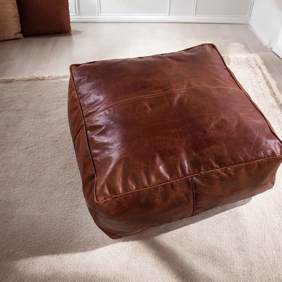 Customize your comfort with our unstuffed leather poufs. Choose your preferred size and fill them with materials like cotton, foam, or recycled beads to achieve your desired level of softness and support.
